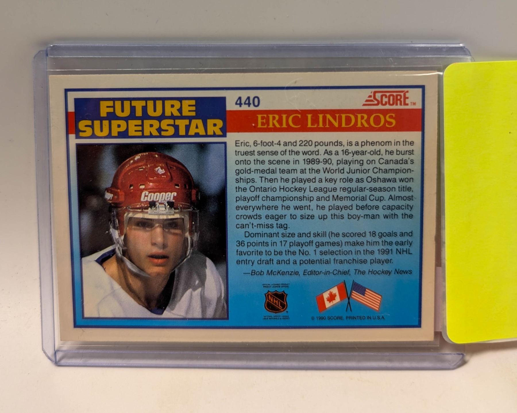 Lot 9310 1991 SCORE ERIC LINDROS ROOKIE CARD 440