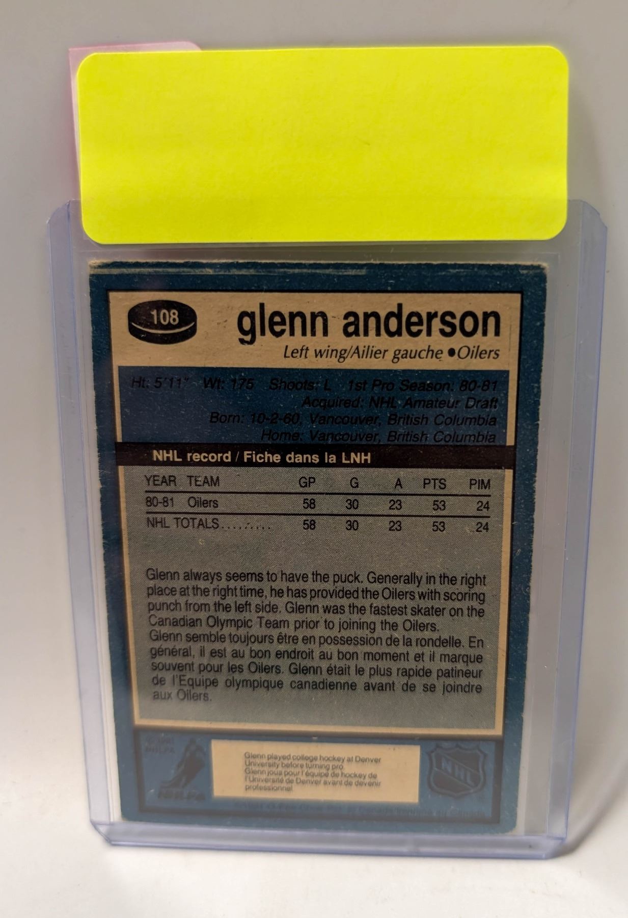 Lot 9313 1981 OPC GLENN ANDERSON ROOKIE CARD
