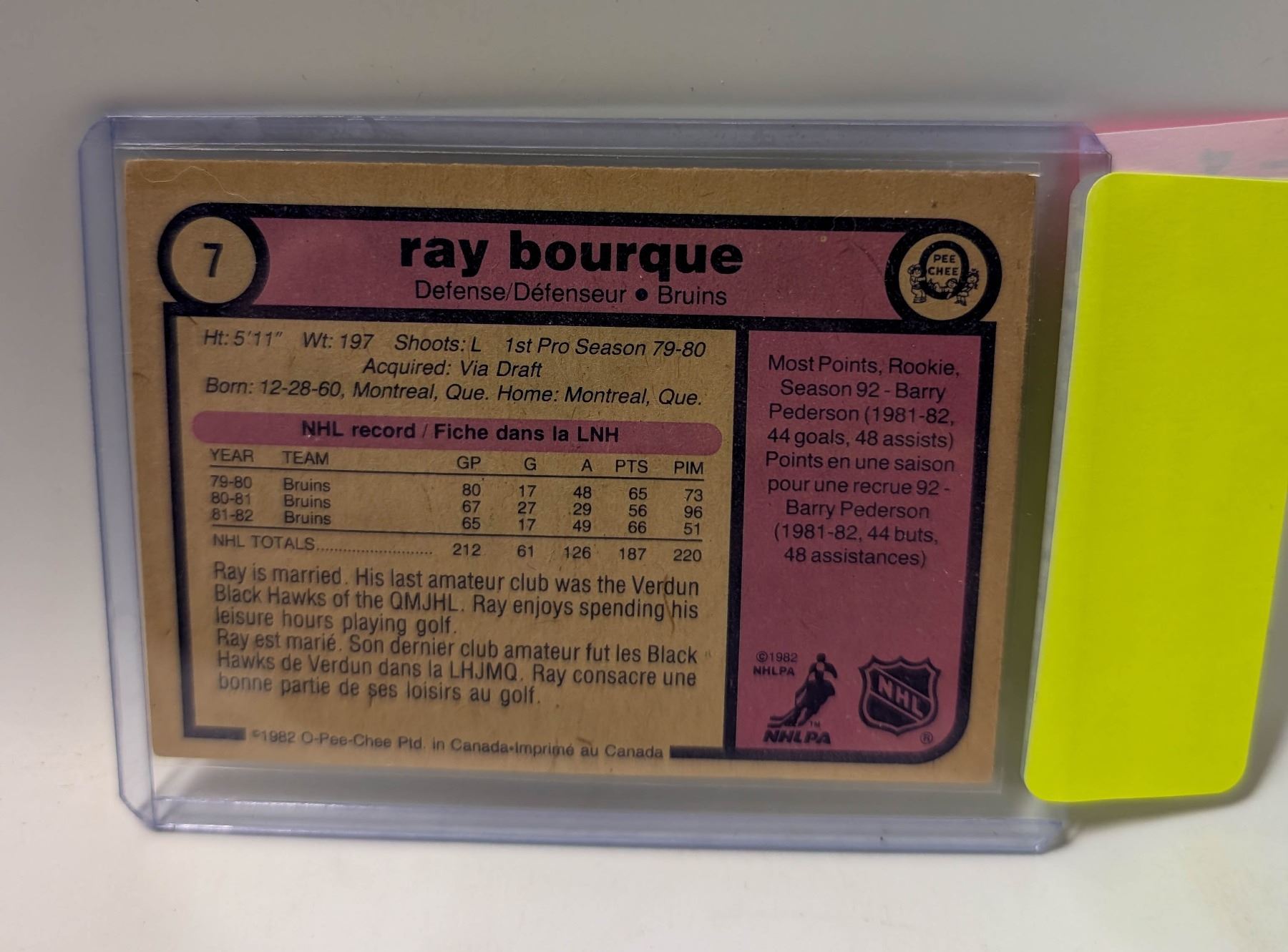 1982 OPC RAY BOURQUE HOCKEY CARD 7