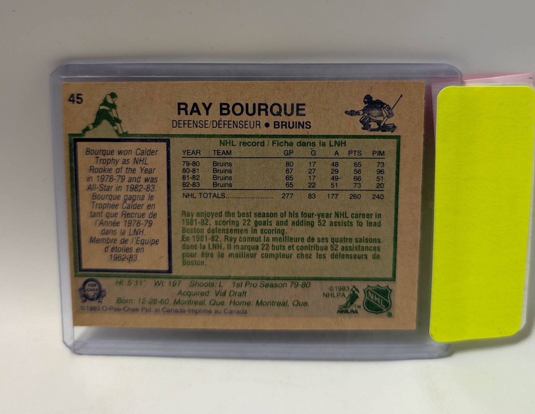Lot 9323 1984 OPC RAY BOURQUE HOCKEY CARD