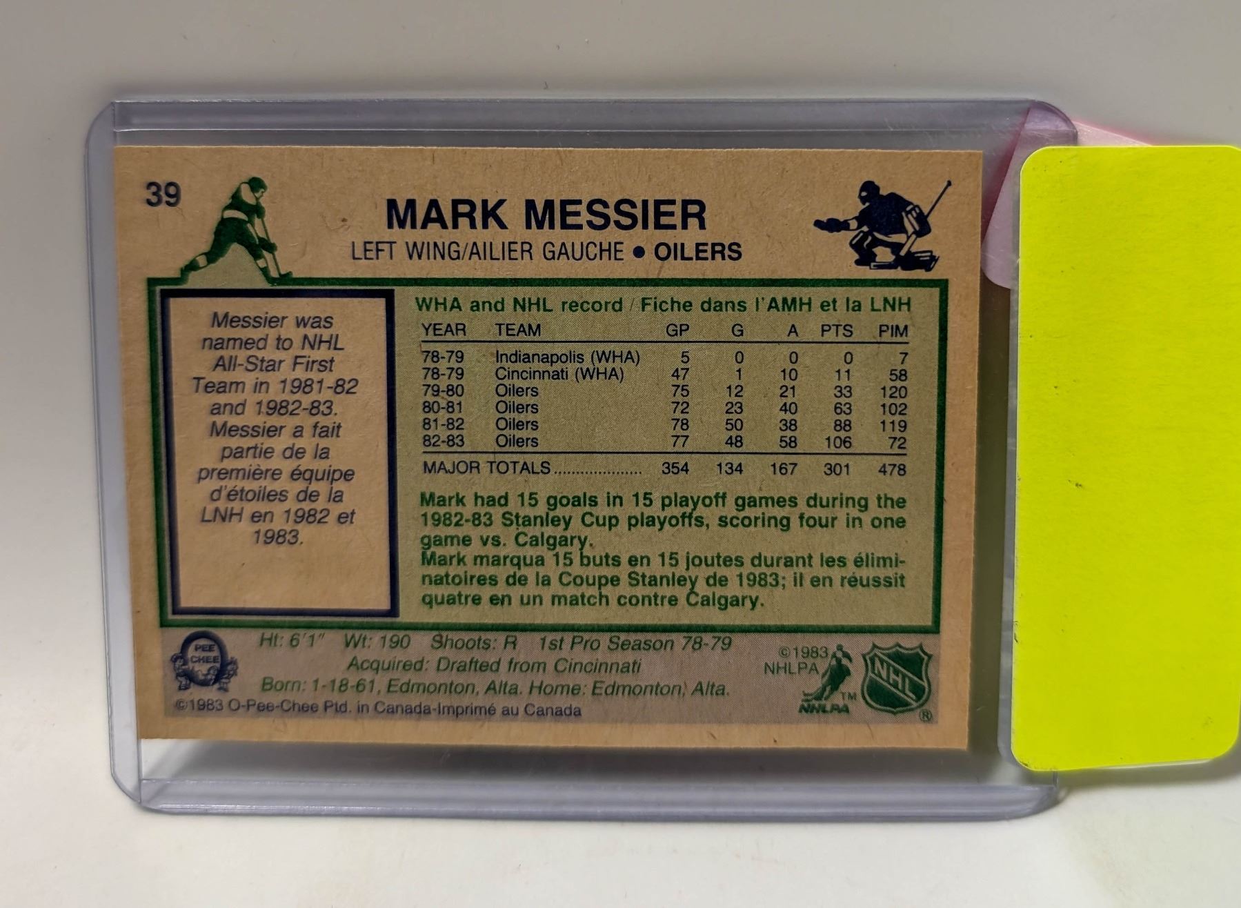 Lot 9329 1984 OPC MARK MESSIER HOCKEY CARD