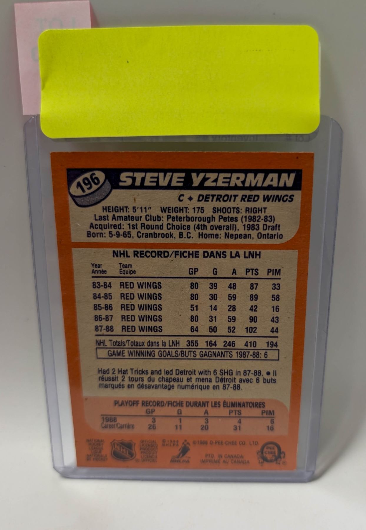 Lot 9330 1988 OPC STEVE YZERMAN HOCKEY CARD