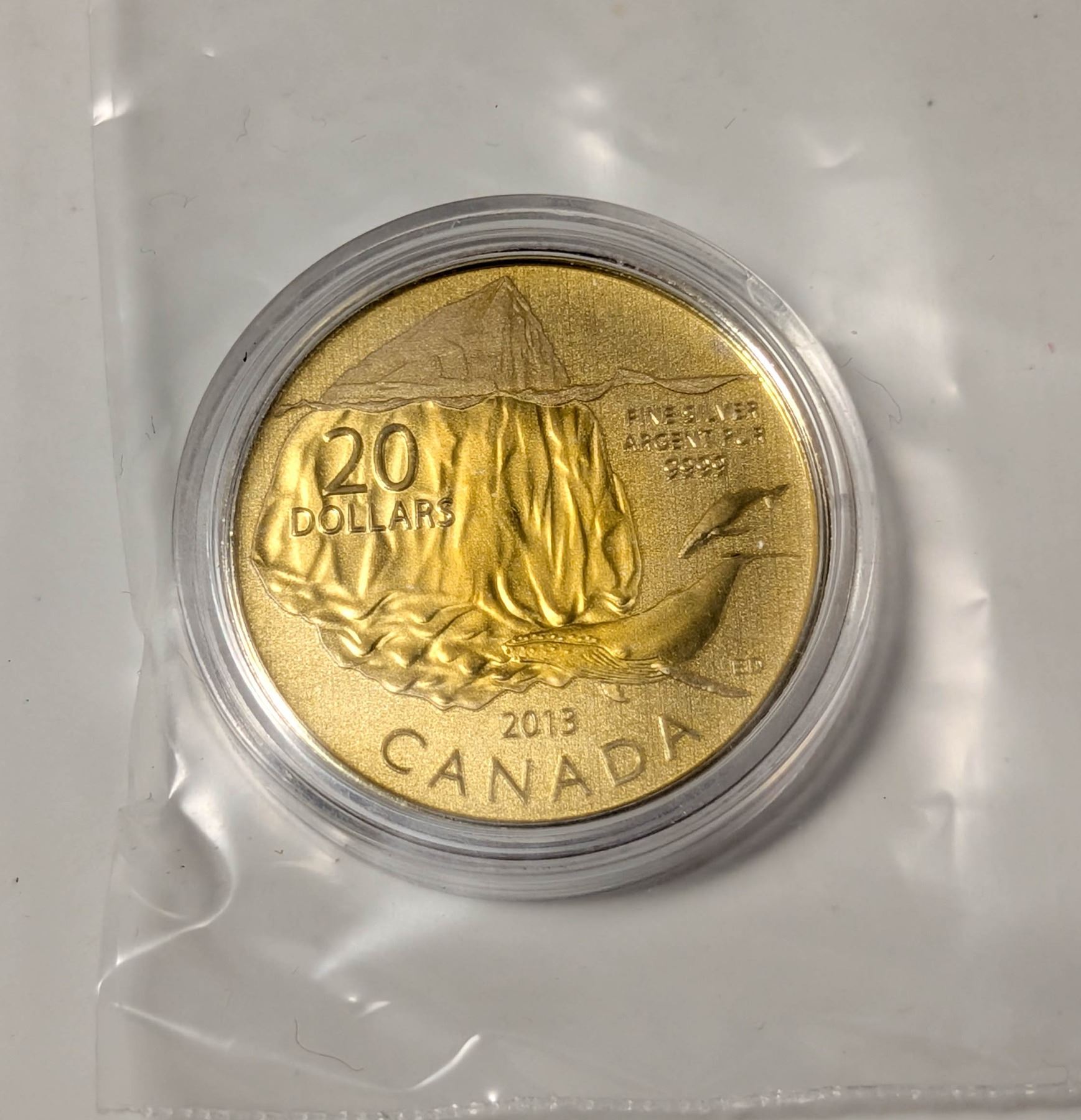 GOLD PLATED FINE SILVER CANADA $20 COIN