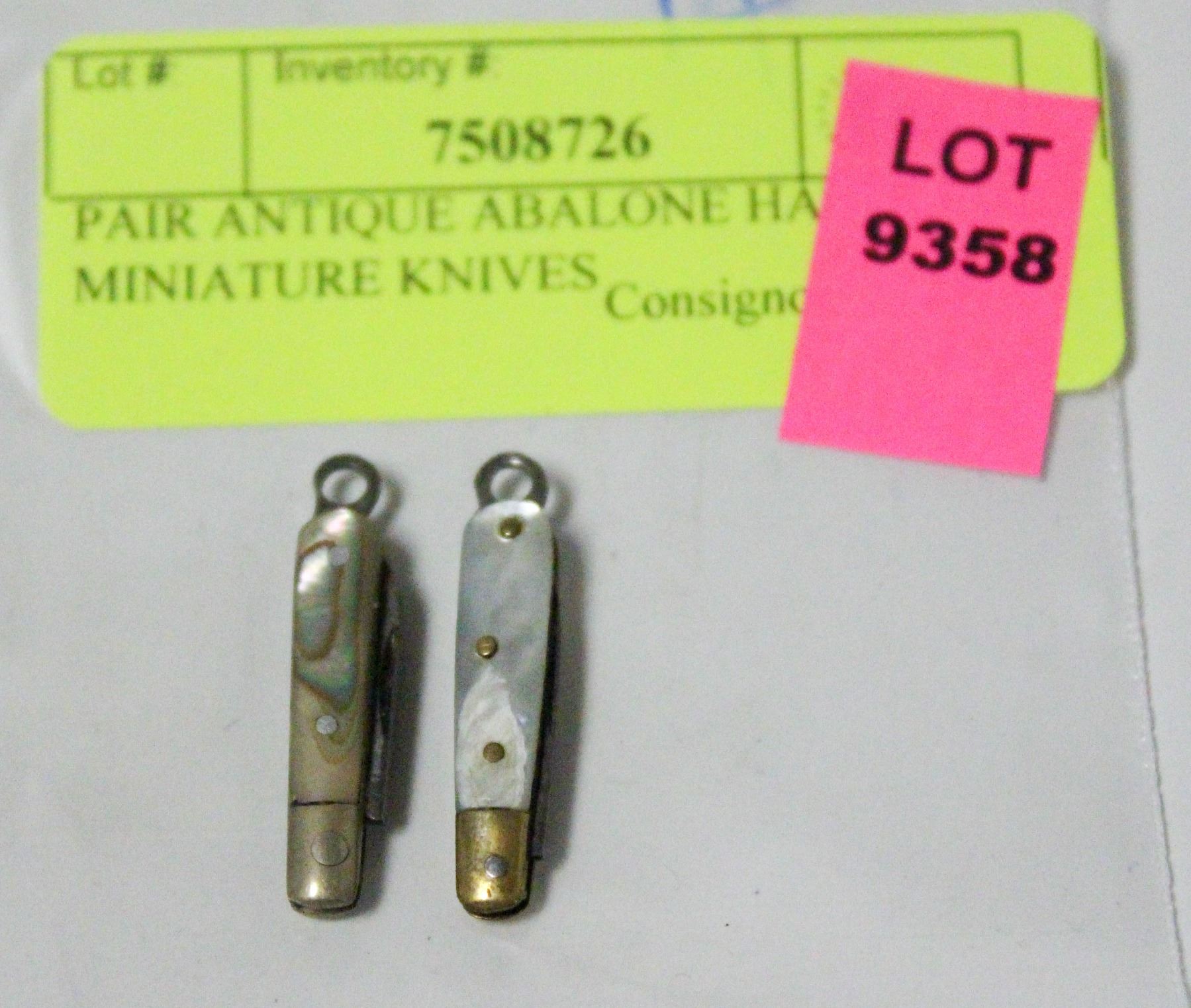 Lot 9358 PAIR ANTIQUE ABALONE HANDLED MINIATURE KNIVES