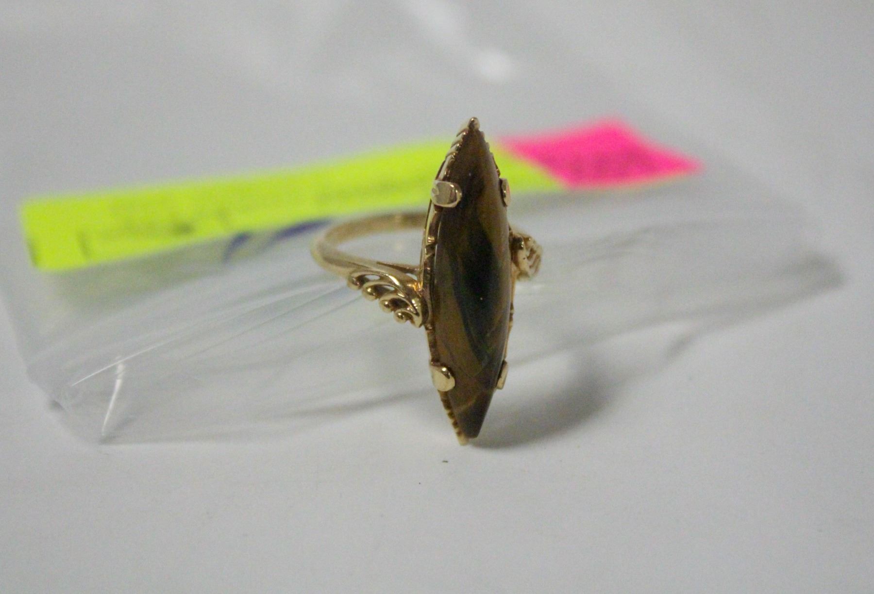 Lot 9379 10K GOLD RING WITH TIGERS EYE STONE