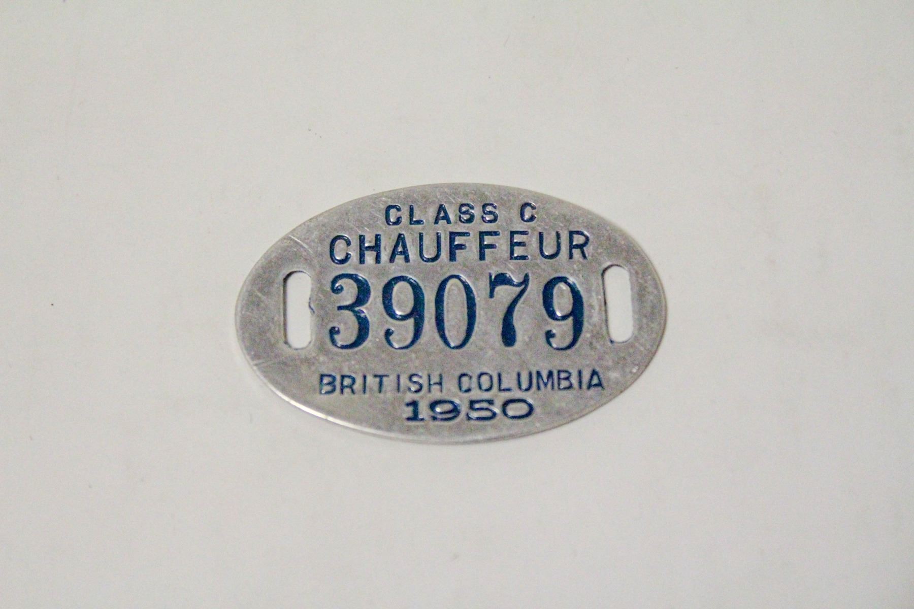 Lot 9413 1950 BRITISH COLUMBIA CHAUFFEURS BADGE
