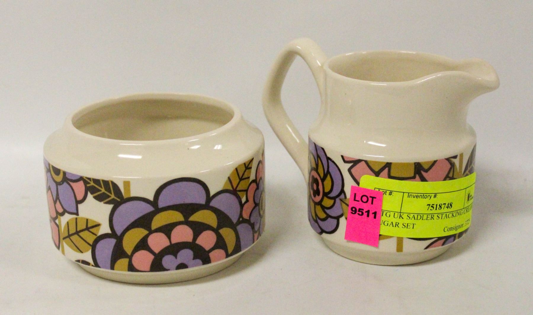 Lot 9511 VTG UK SADLER STACKING CREAM SUGAR SET