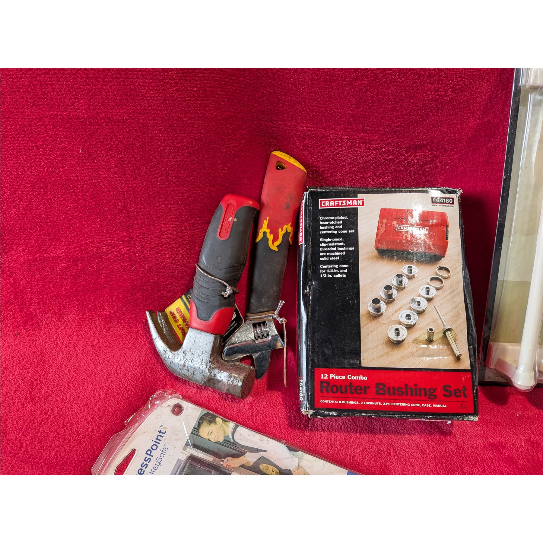 JUMPER CABLES, Small engine spark plugs, key lock, remote light control, MO3 Player, small hammer, crescent wrench,Router Bushing Set