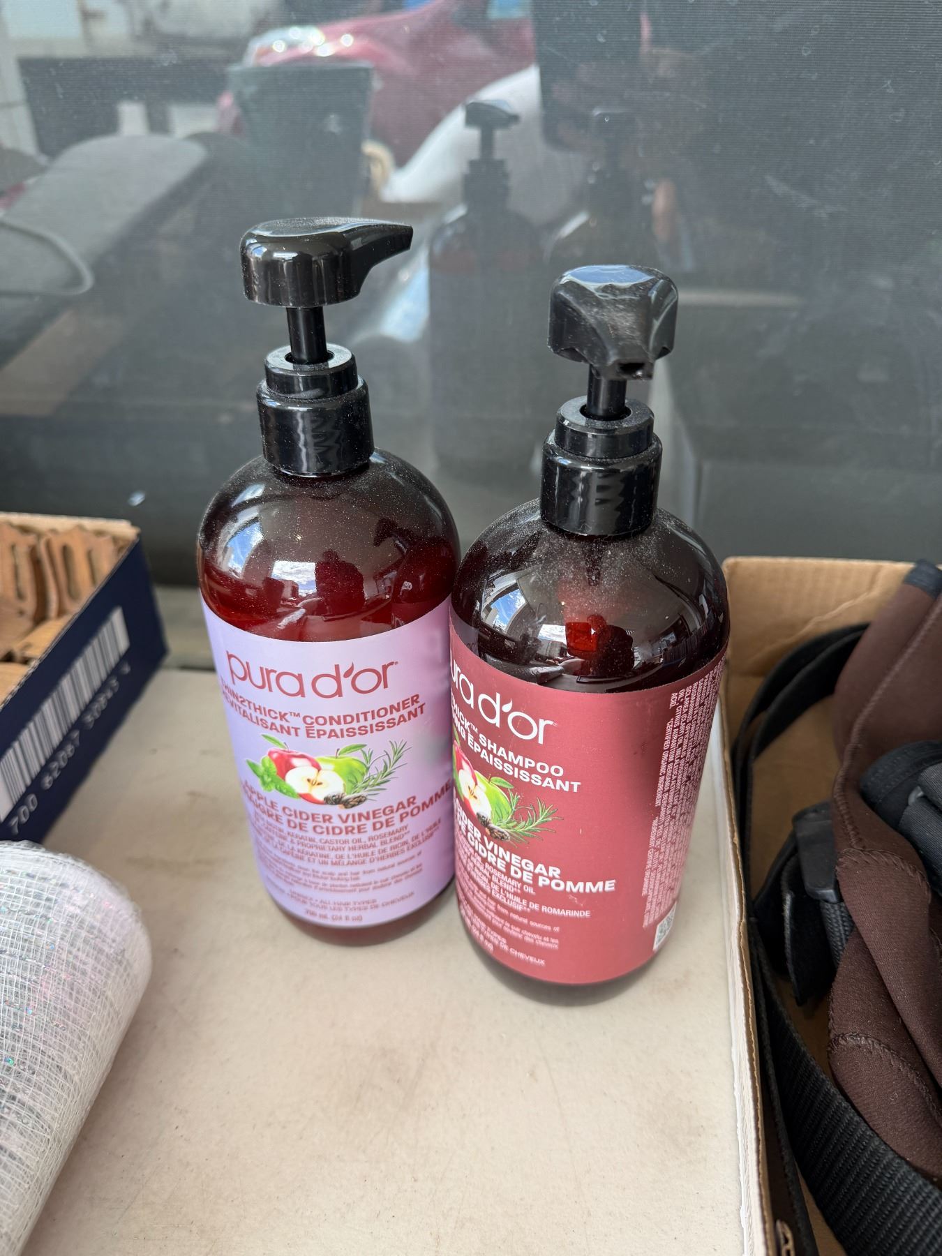 Lot 354 Apple cider vinegar, shampoo, and conditioner