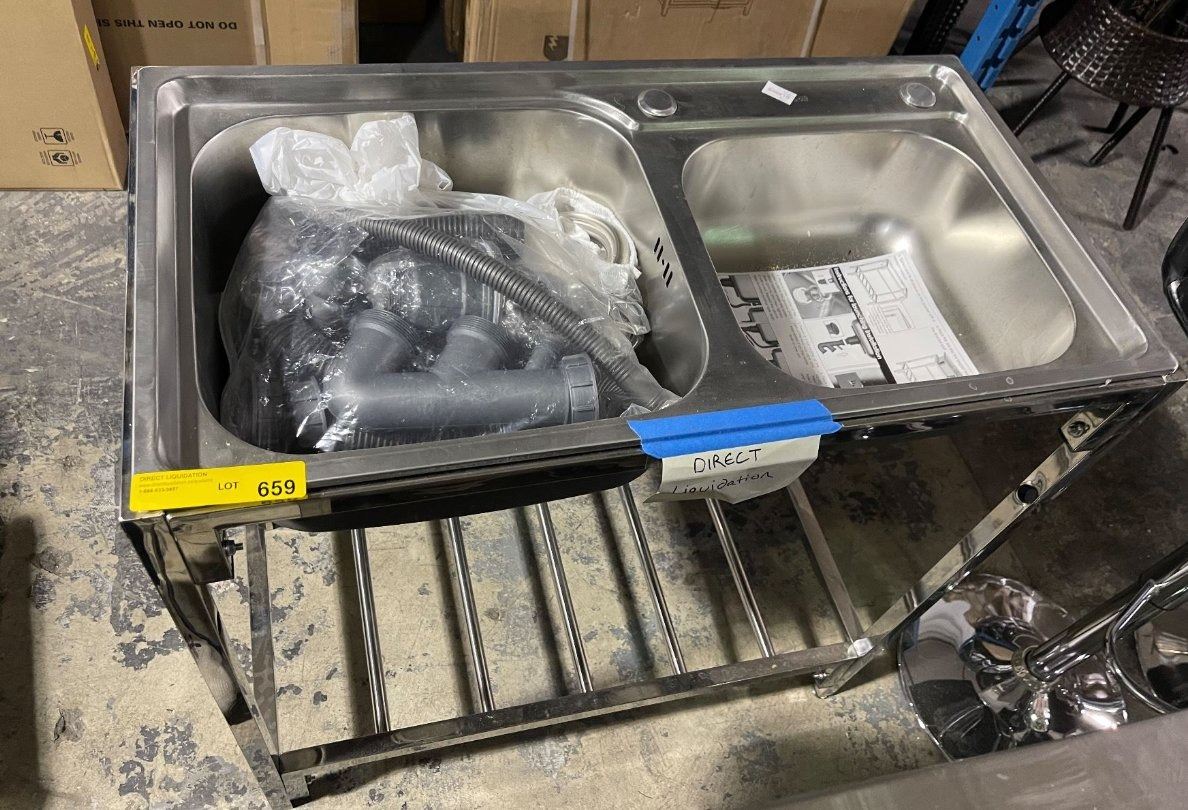 Lot 79 Stainless Steel Double-basin Sink, Approx. H33" x W32" x D17"