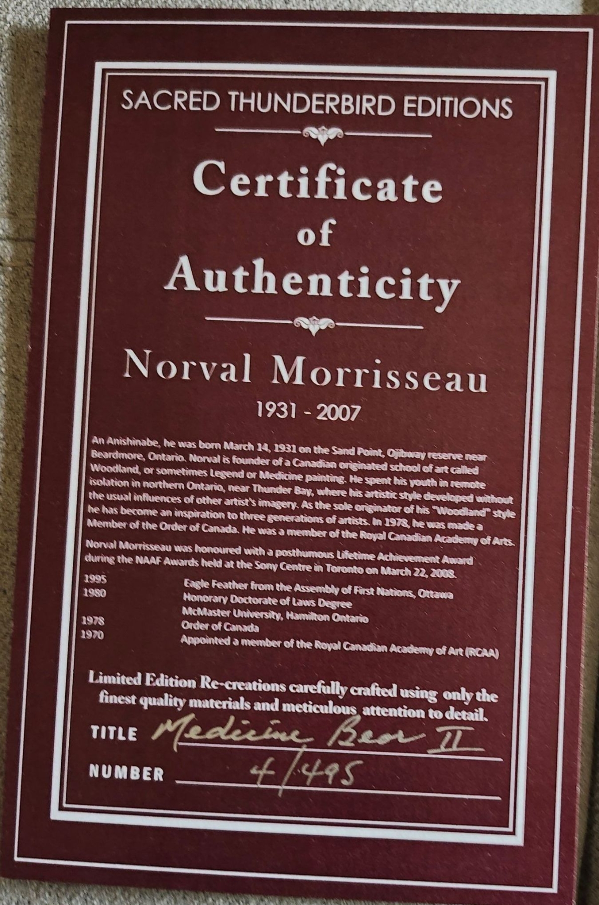 Lot 330 Limited Edition Print By Norval Morrisseau Titled "Medicine Bear II"