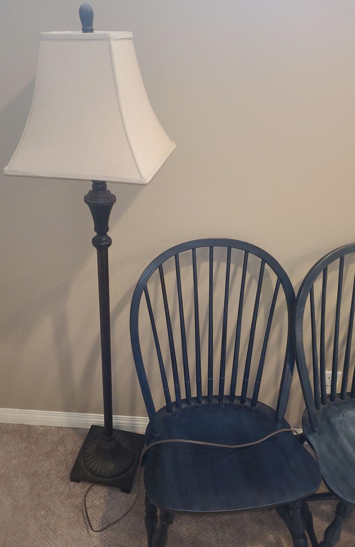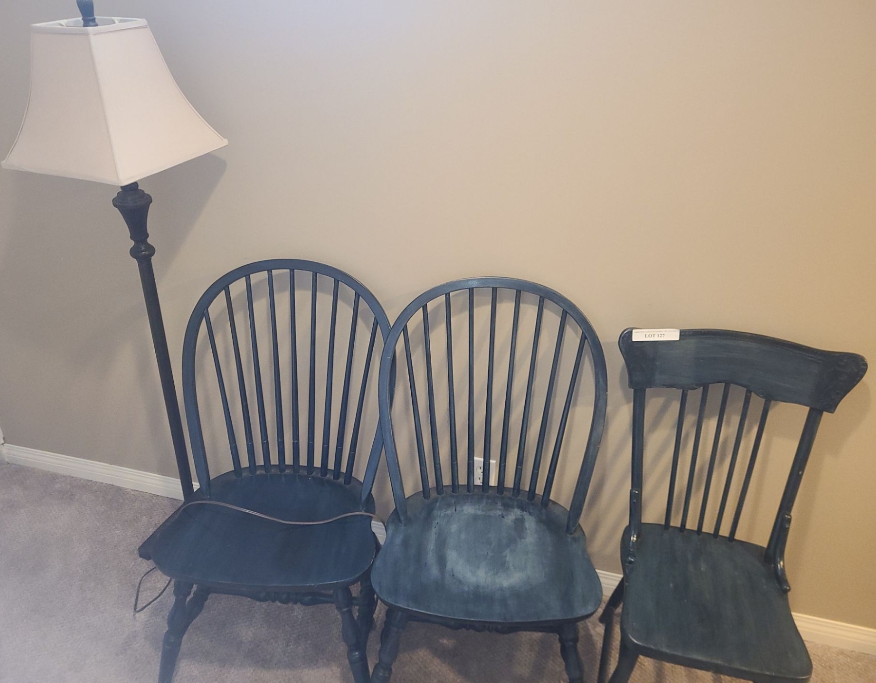 Lot 127 Three Wood Tel Colour Chairs and Floor Lamp