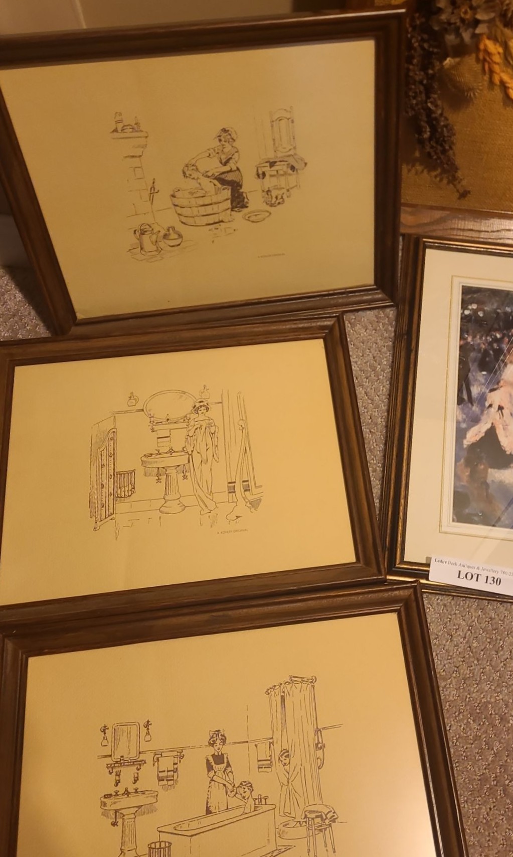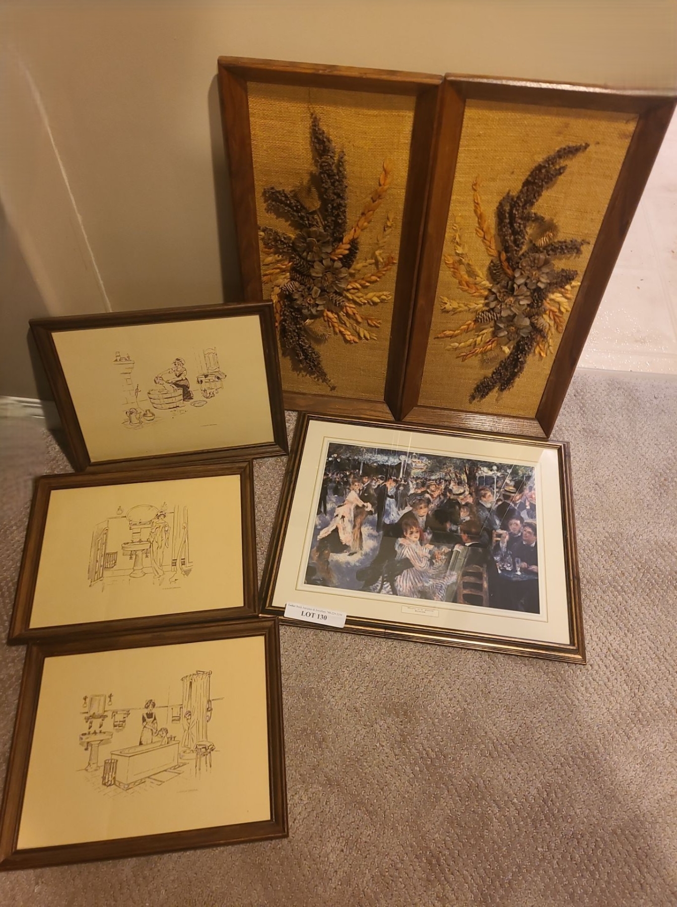 Lot 130 Prints & Natural Floral Decor. Renoir Print 22 w 18 h