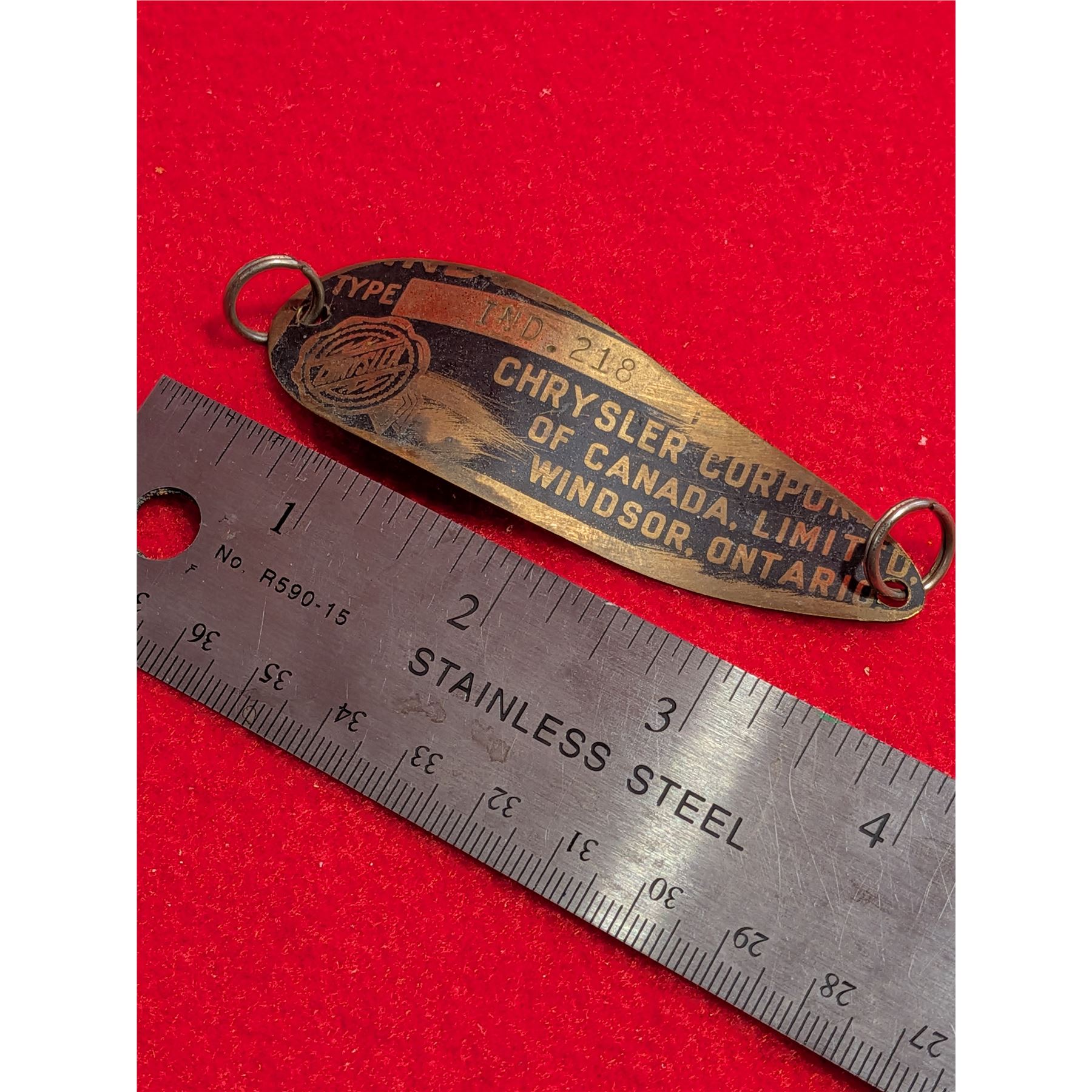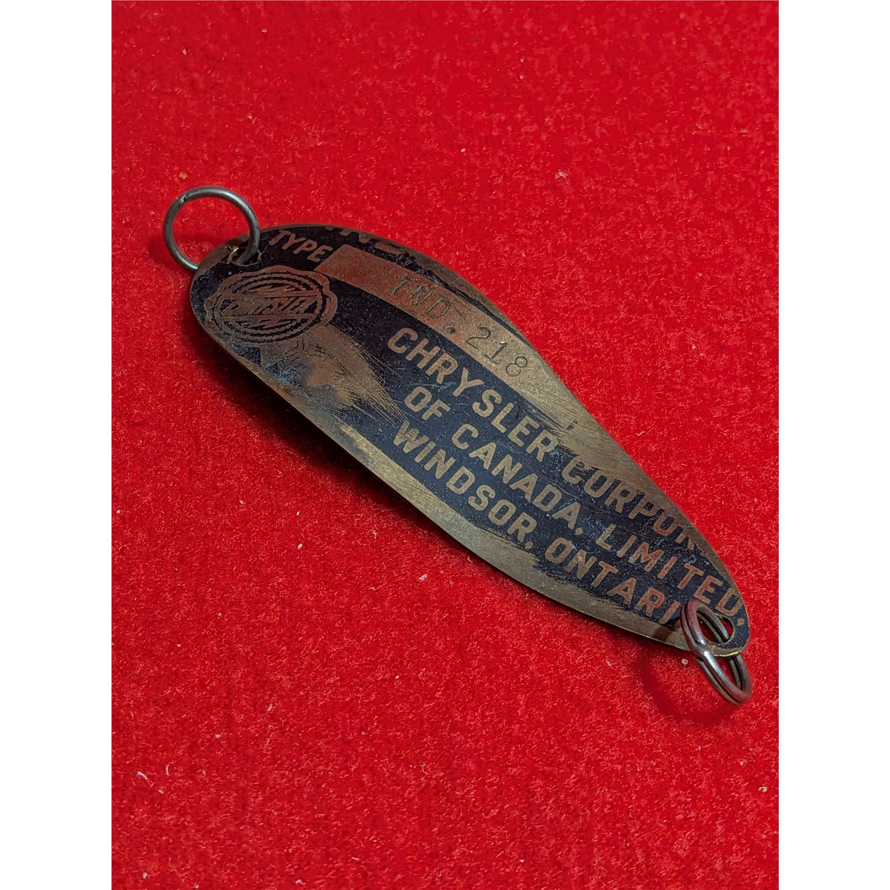 VINTAGE HANDMADE FISHING LURE from CHRYSLER CORPORATION OF CANADA ID brass plate.