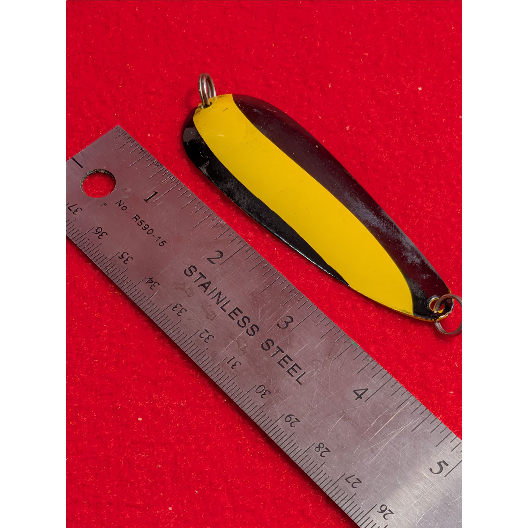 VINTAGE A.W. WATER WITCH Fishing Lure Black & Yellow swirl.