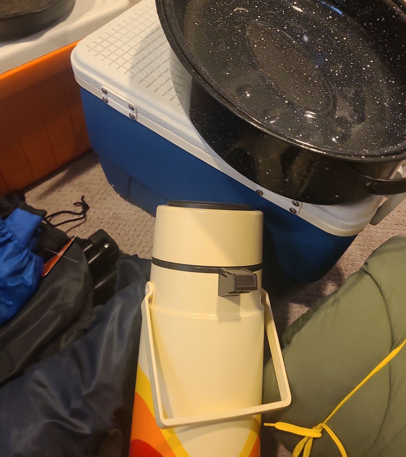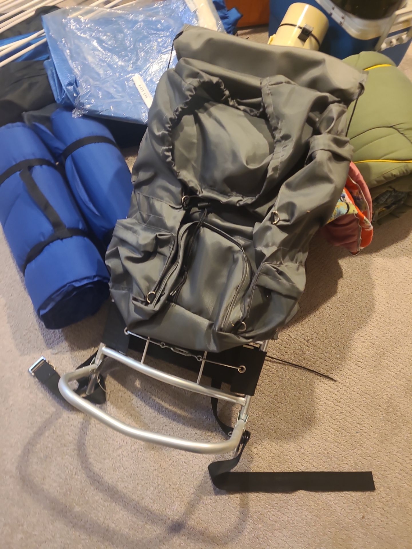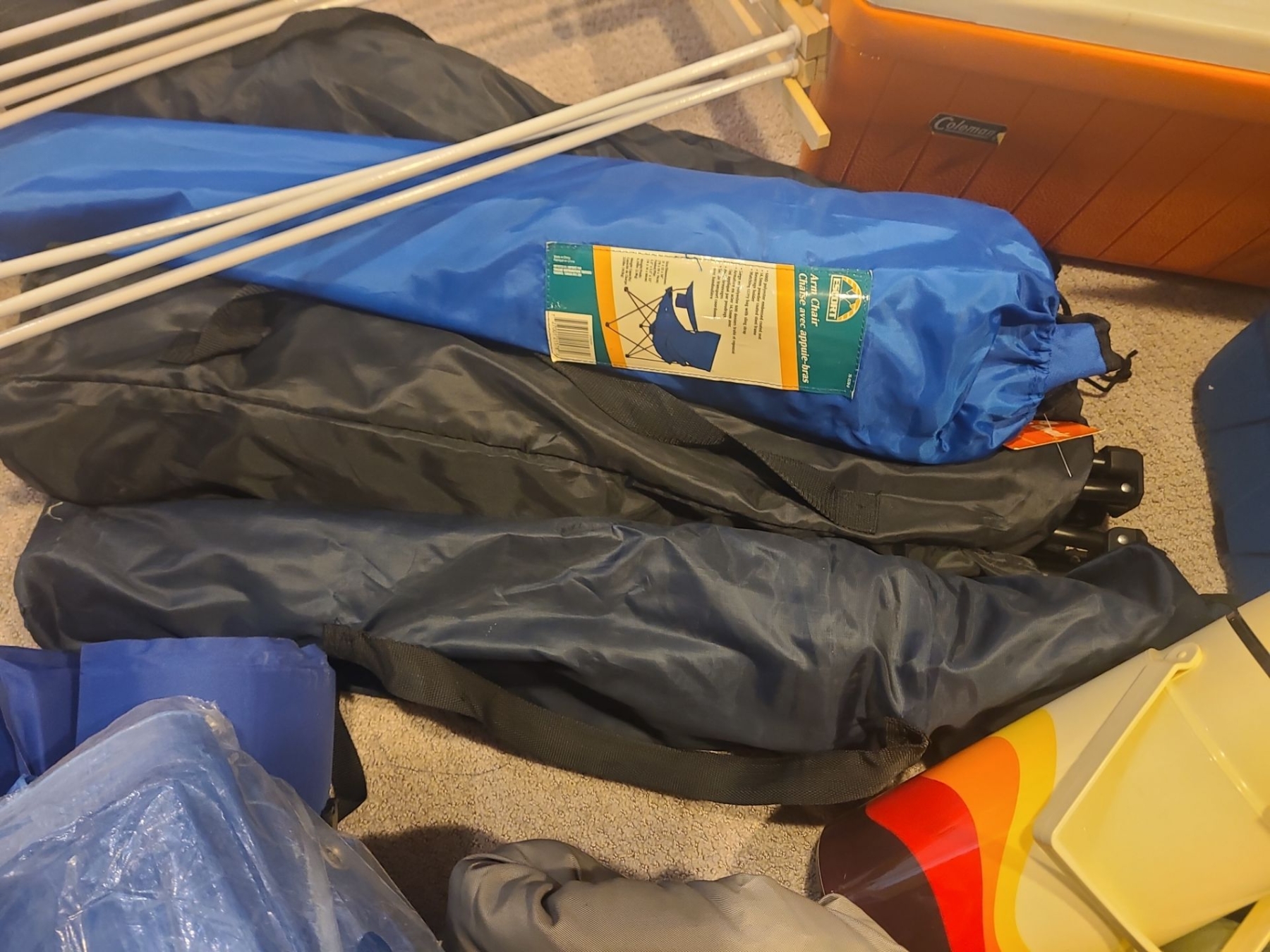 Lot 135 Coolers, Sleeping Bags, Folding Chairs, Mats, Tarps Backpack, Cast Iron Frying Pan & Eureka Tent