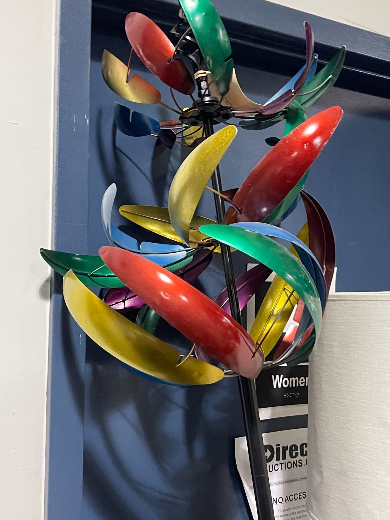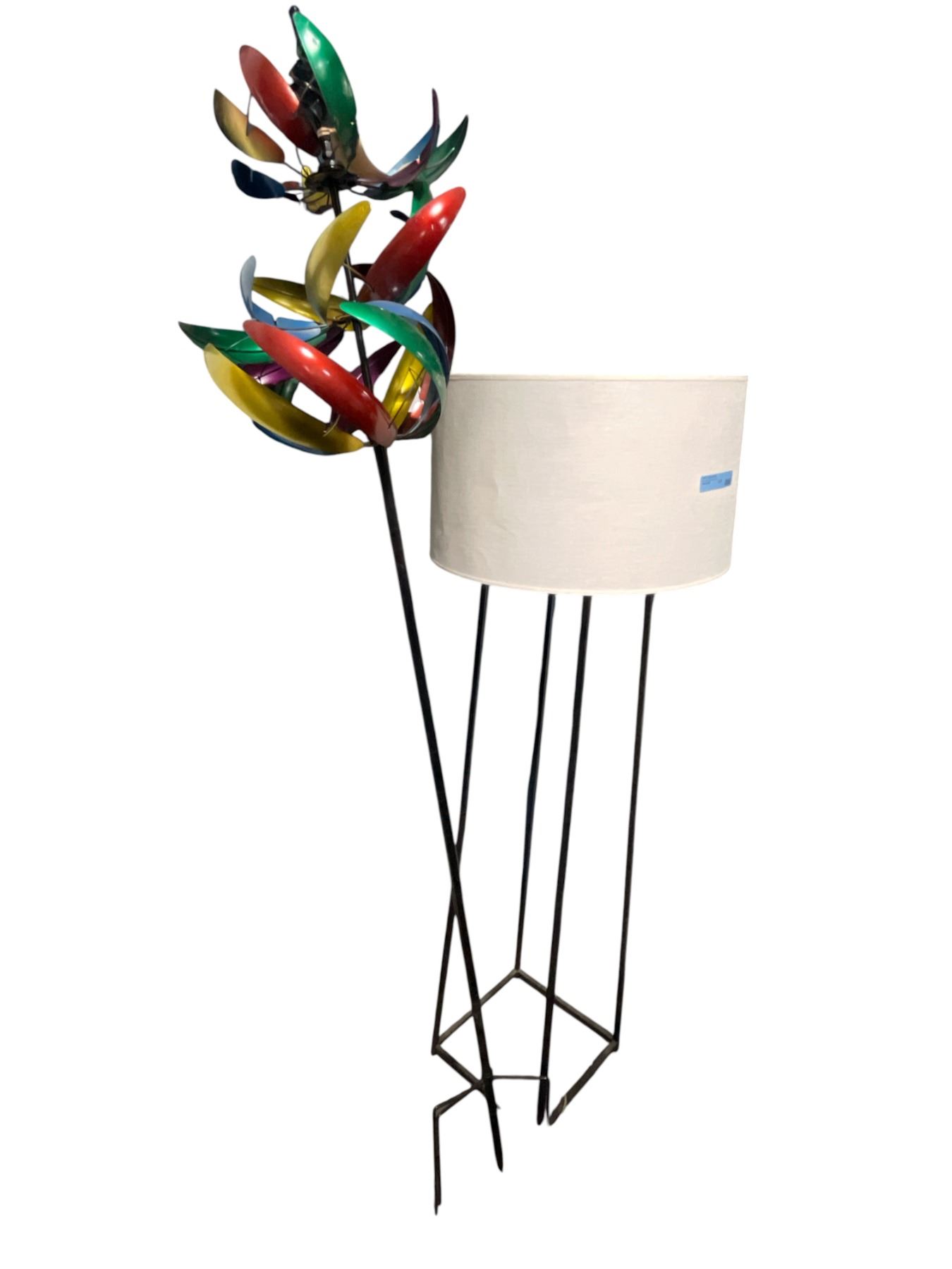 Lot 86 Modern Black Metal Floor Lamp (H66") & Wind Spinner Decor (H81")