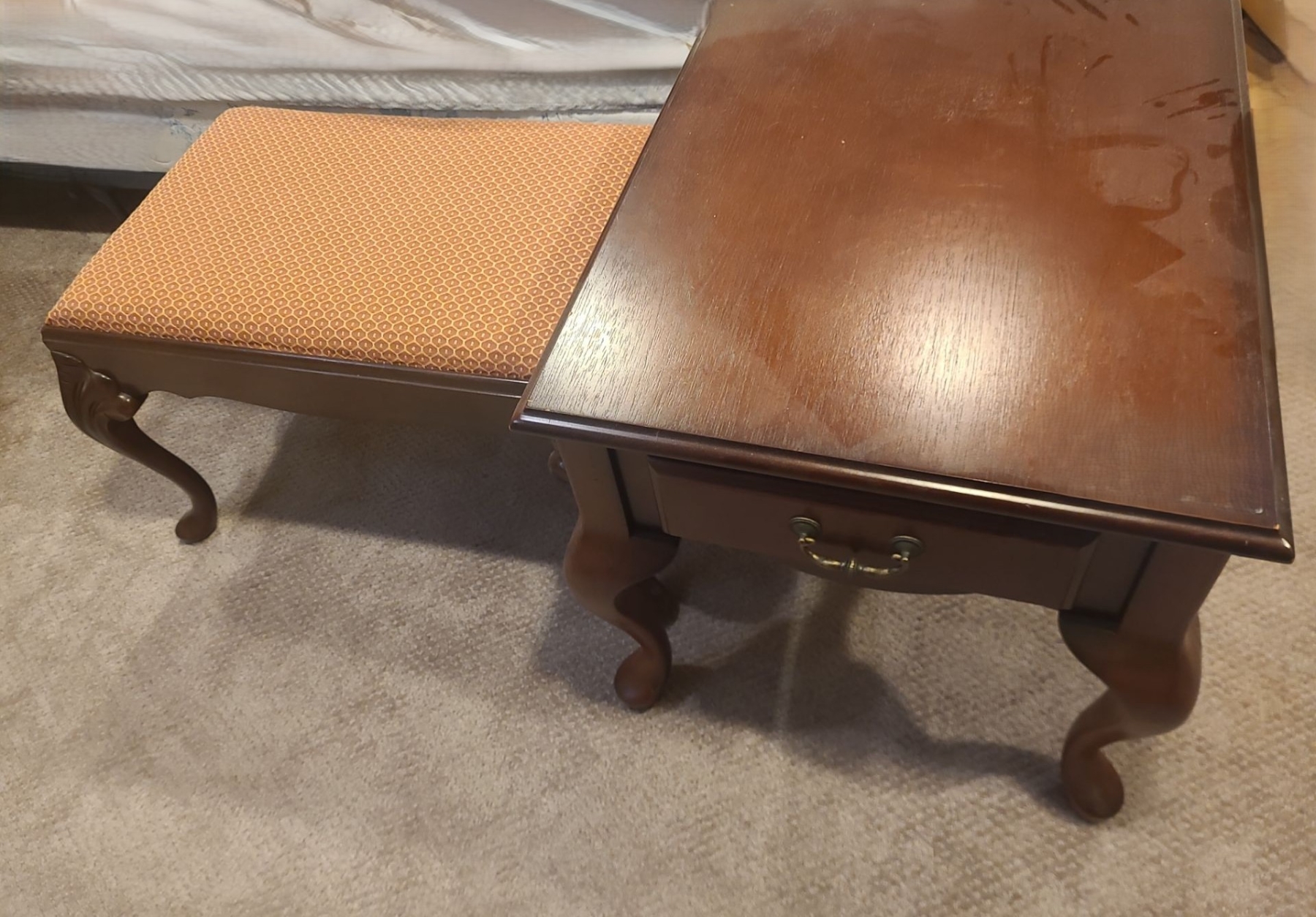 Lot 144 Wooden Side Table w Drawer 21 w 26 d 21 1/2 h & Bench