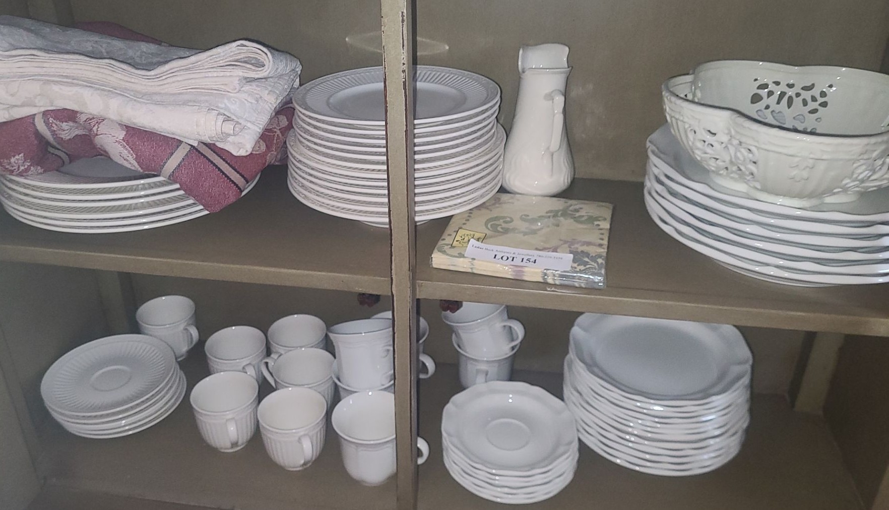 Lot 154 Contents of Cupboard, Mikasa Italian & French Countryside Dinnerware & Table Linens