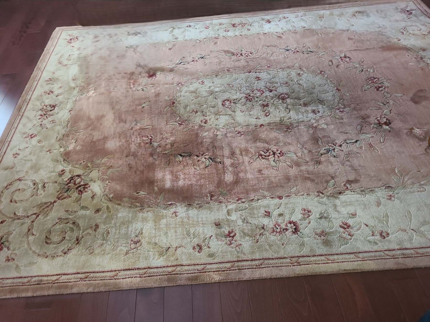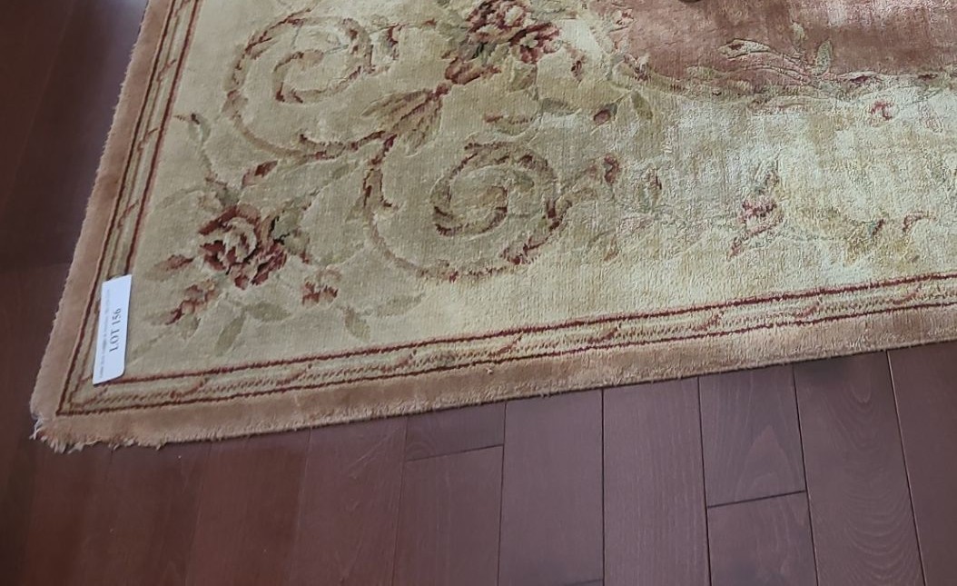 Lot 156 Beige & Antique Rose Floral Area Rug 66 w 90 l & Sage Green Area Rug 59 w 95 l