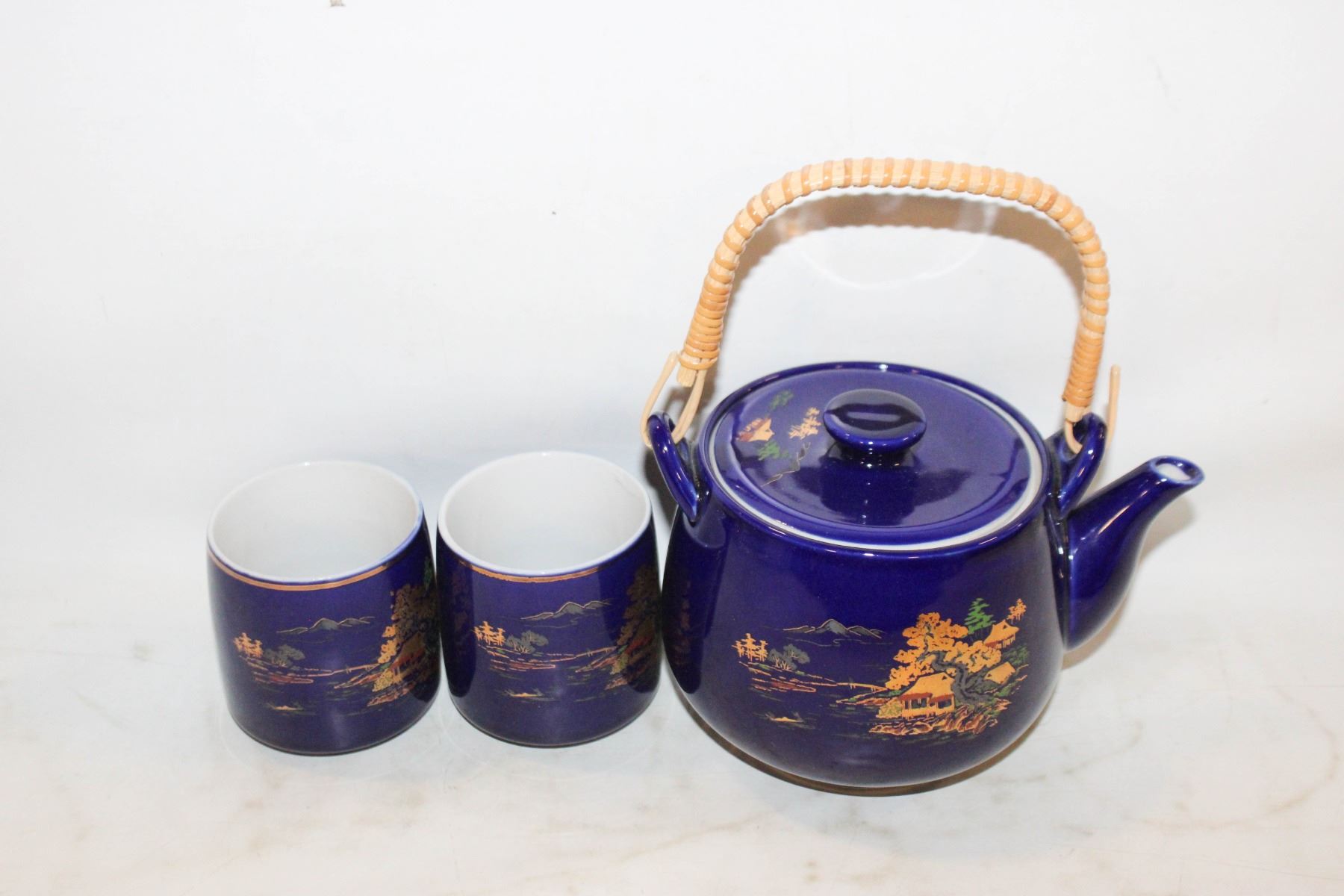 Lot 6099 VINTAGE JAPANESE BLUE/GOLD TEAPOT & CUPS