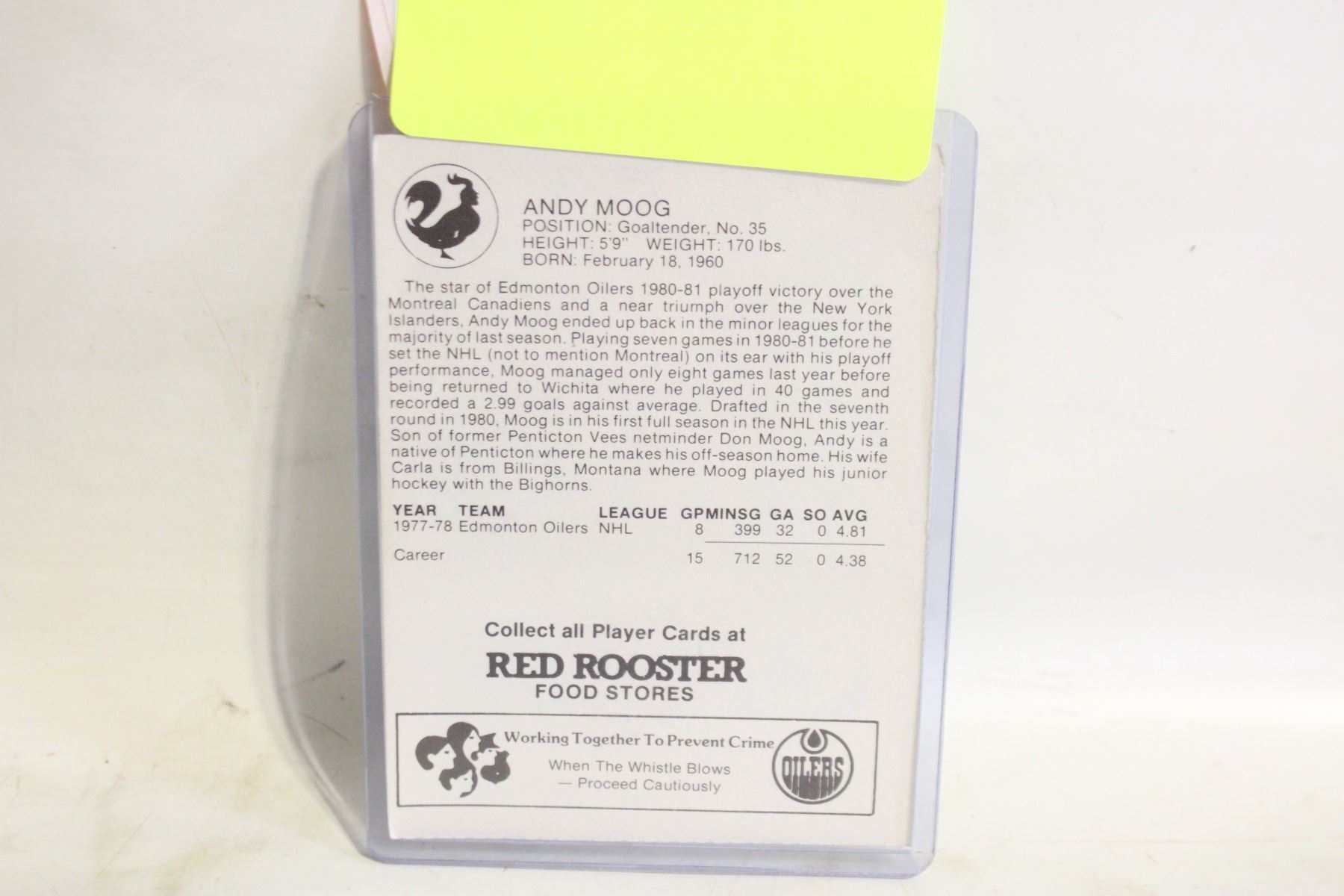 Lot 6197 ANDY MOOG ROOKIE AUTO-PRINTED SIGNATURE
