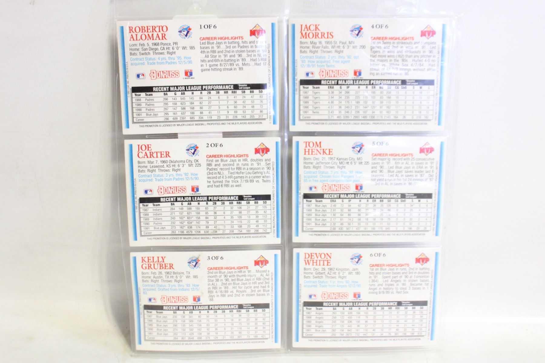 BLUE JAYS 1992 CHAMPS SET 1-6 MVP DON RUSS