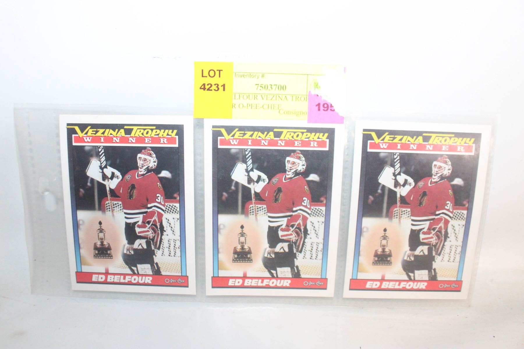 Lot 6208 3 ED BELFOUR VEZINA TROPHY WINNER O-PEE-CHEE