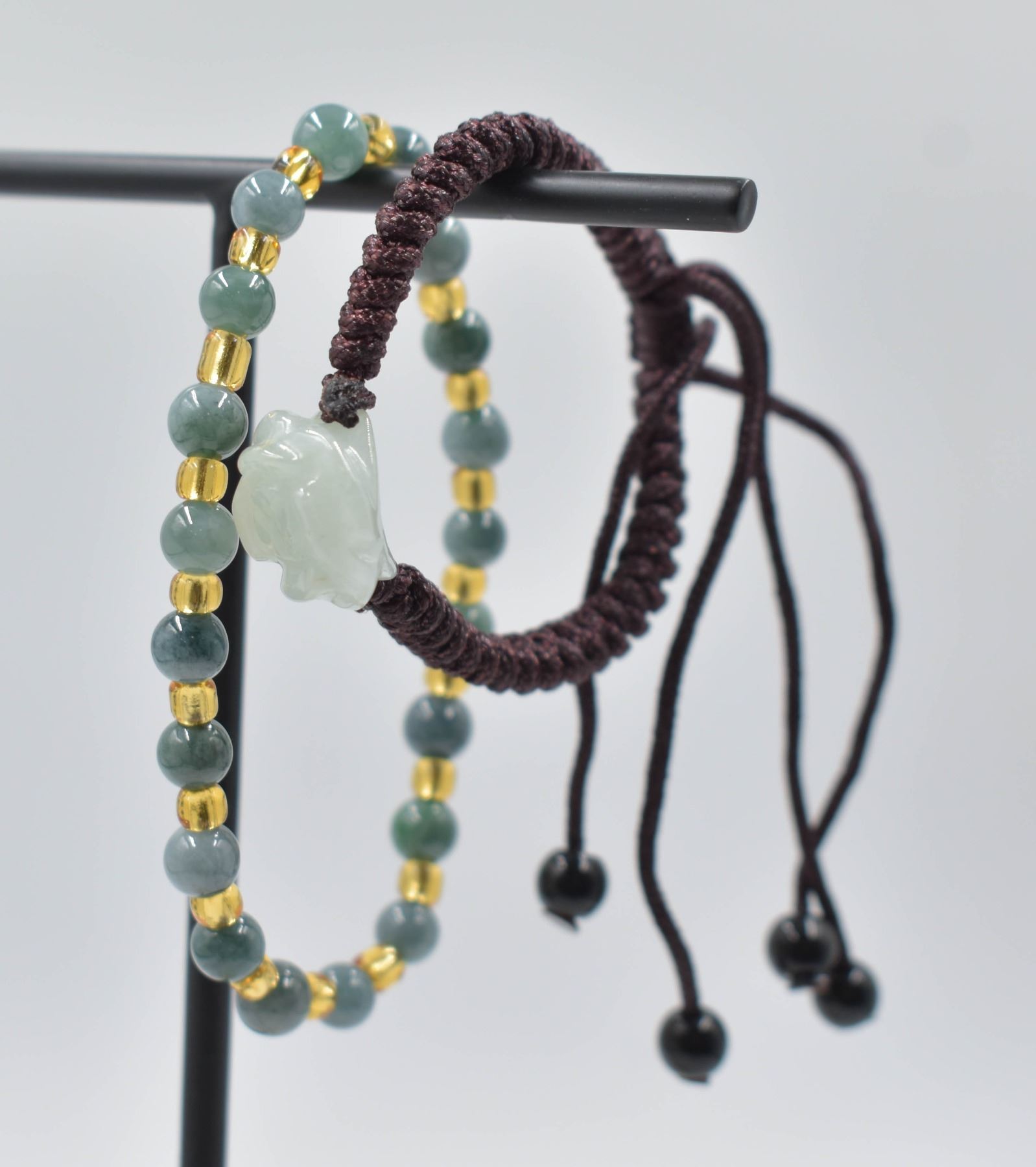 Lot 6299 #133-NATURAL JADE JADEITE DONUT & BEAD BRACELET