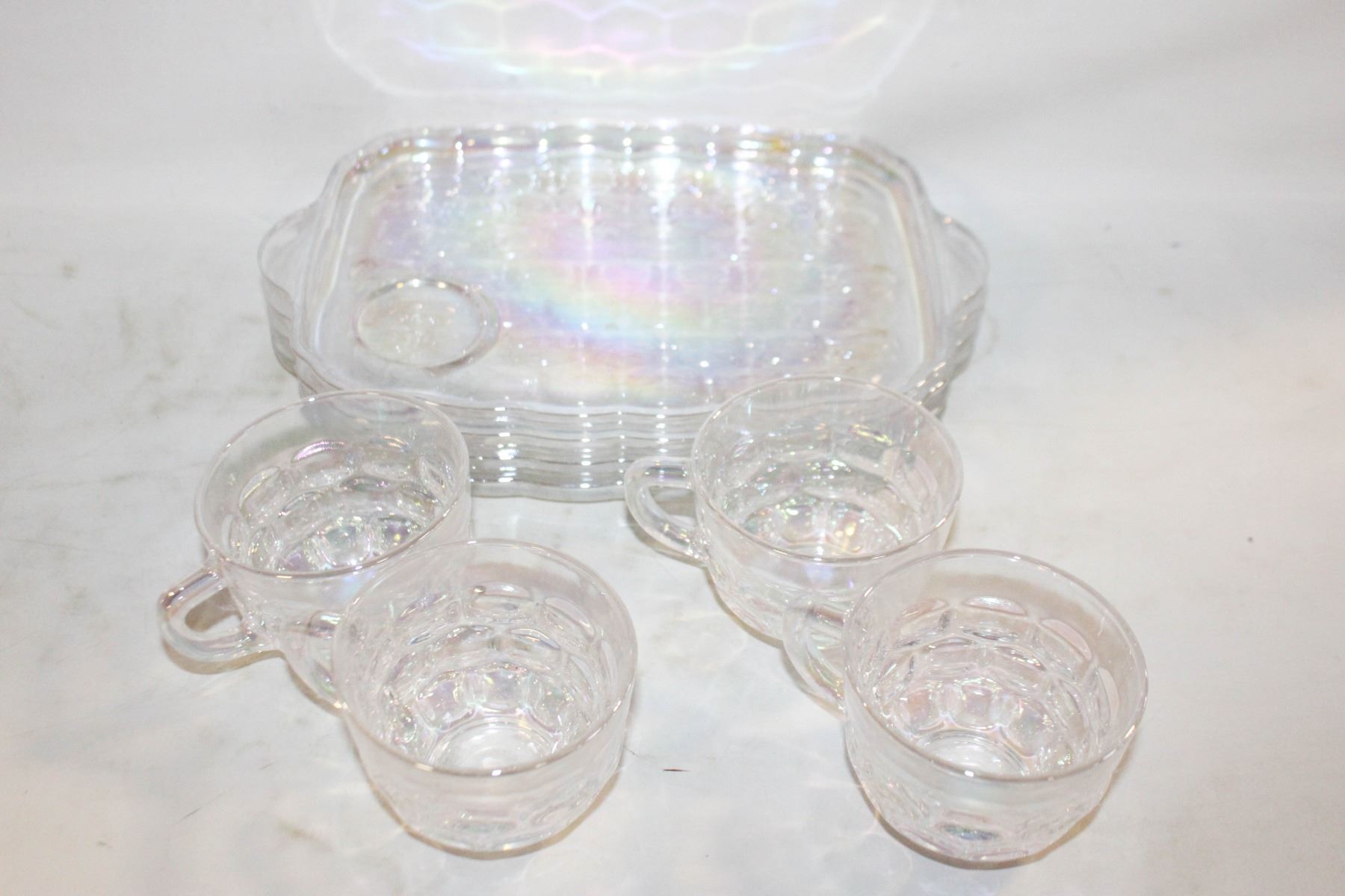 Lot 6371 4 VINTAGE MCM FEDERAL IRIDESCENT SNACK PLATES & CUPS