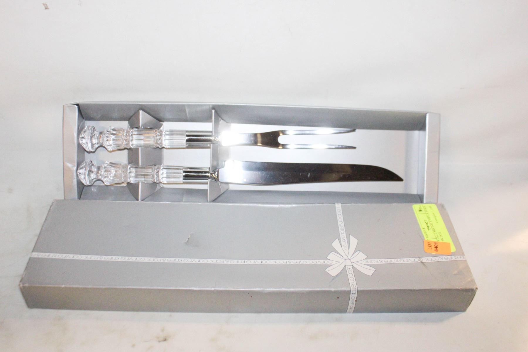 Lot 6401 CRYSTAL CARVING KNIFE & FORK SET IN BOX