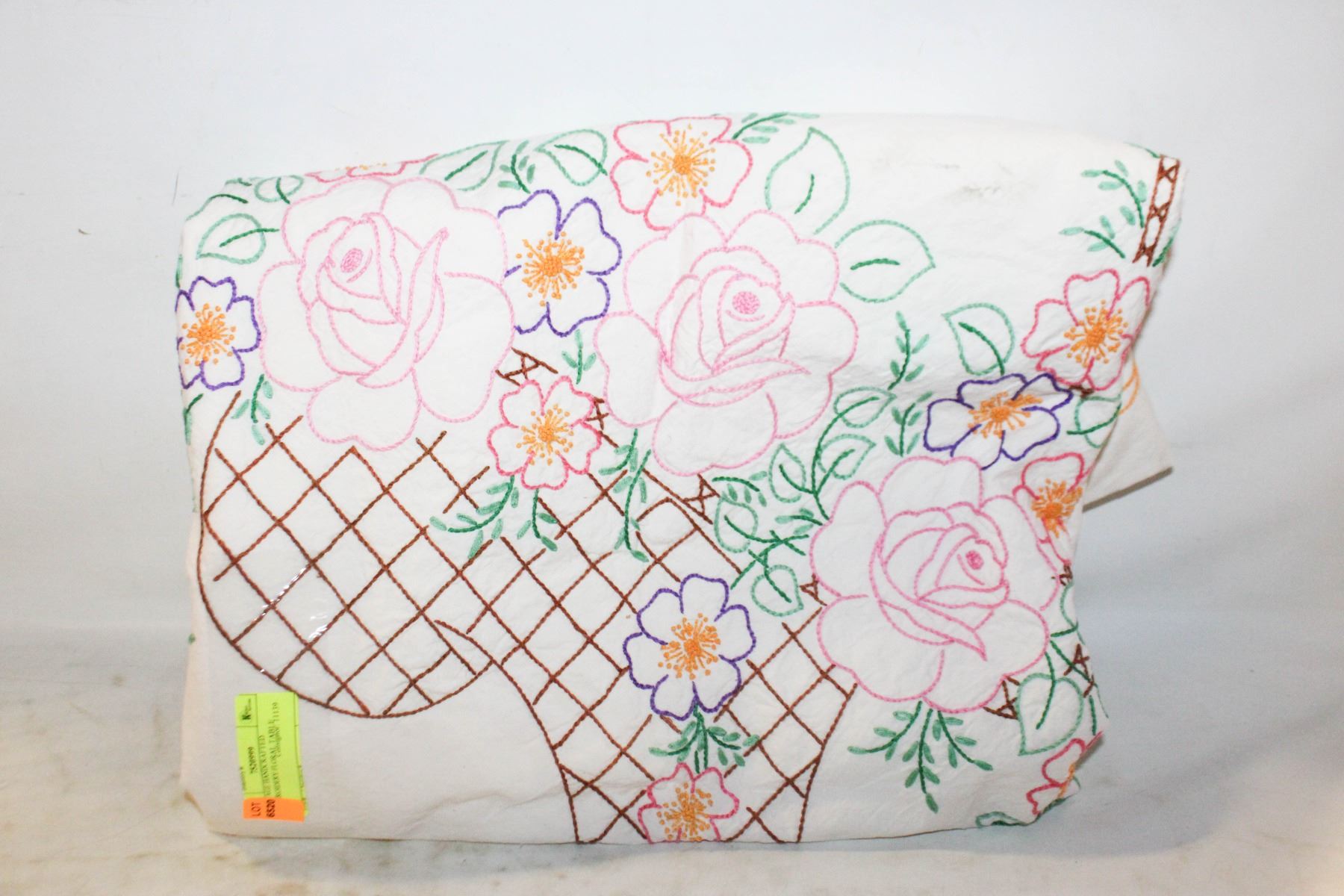 Lot 6520 VINTAGE HANDCRAFTED EMBROIDERY FLORAL TABLE CLOTH