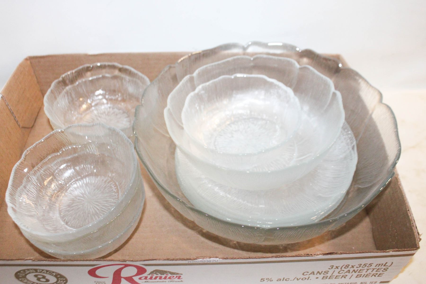 Lot 6549 VINTAGE FLORAL GLASS SERVING SET- 14 PIECES