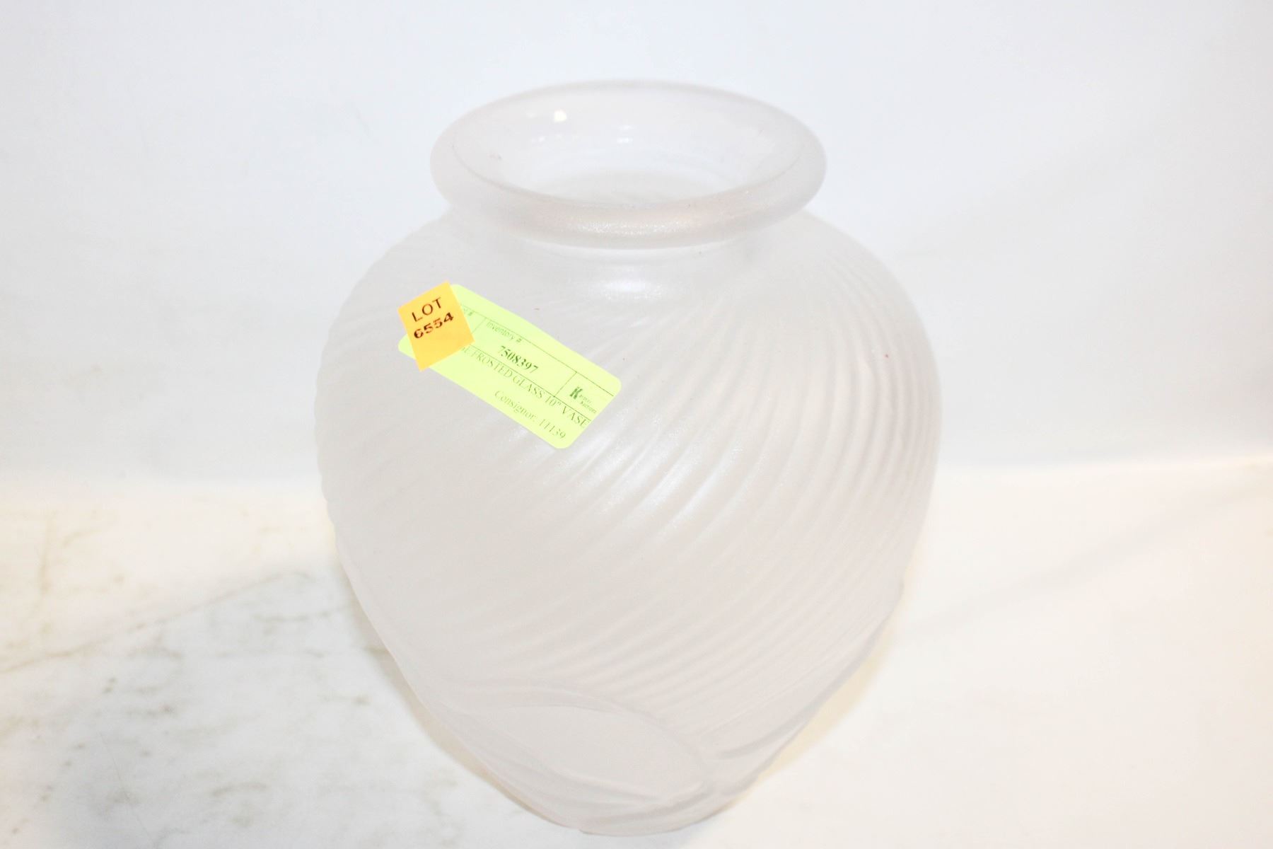 Lot 6554 VINTAGE FROSTED GLASS 10" VASE