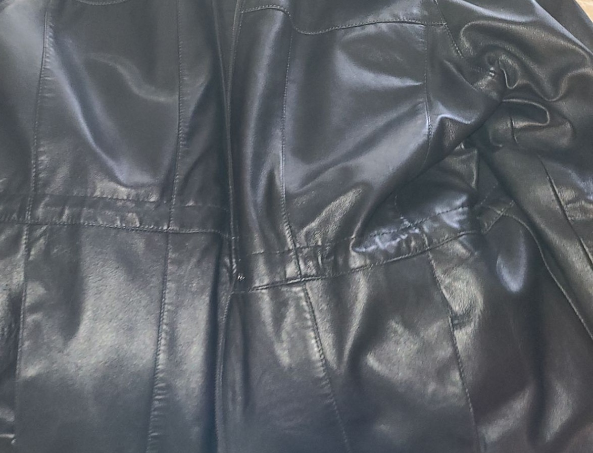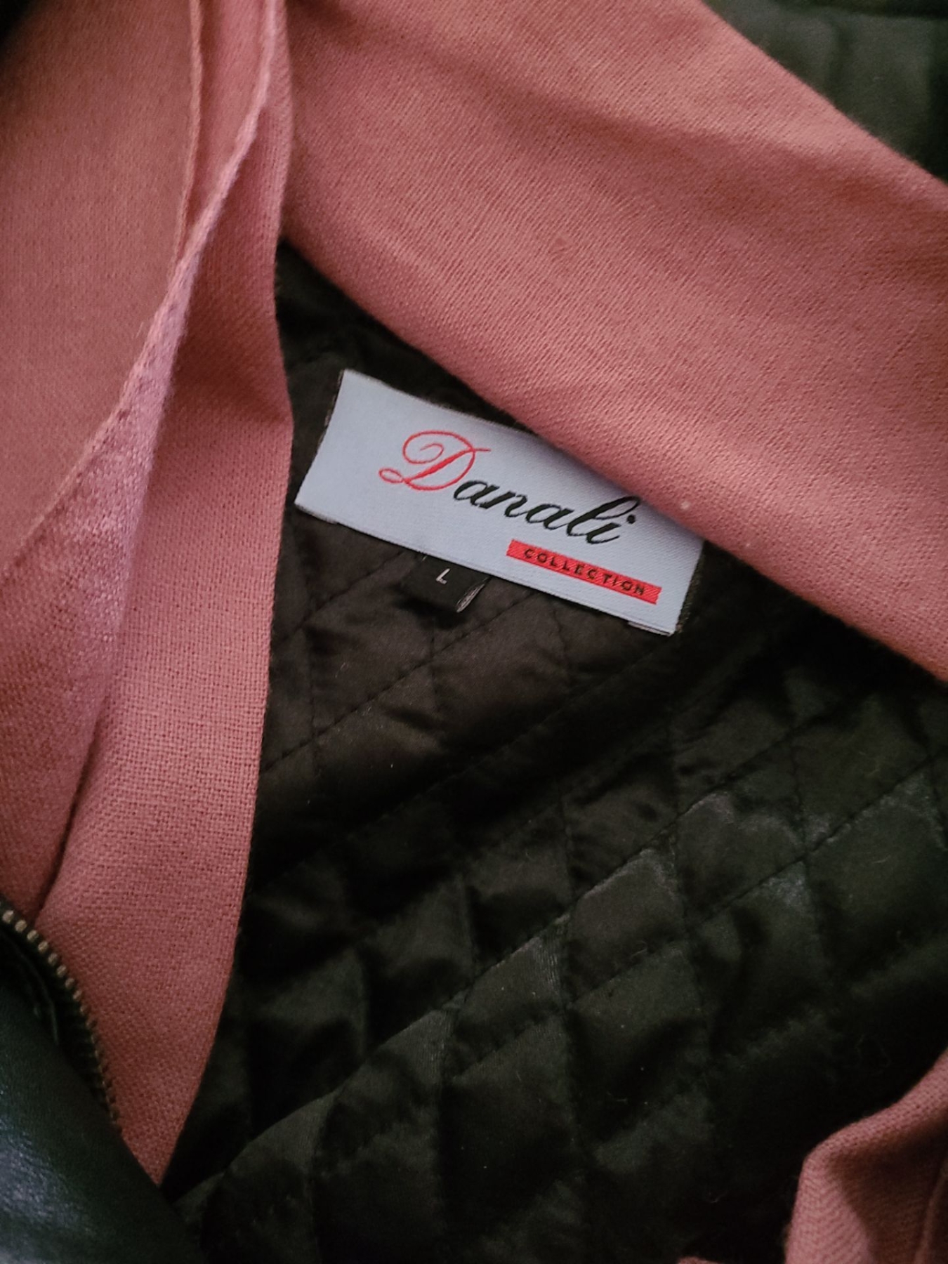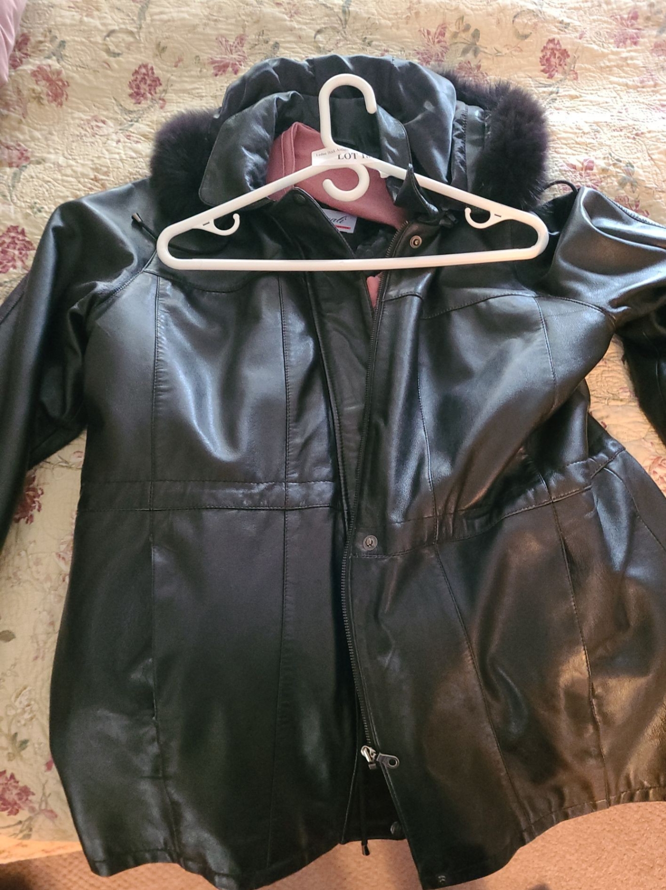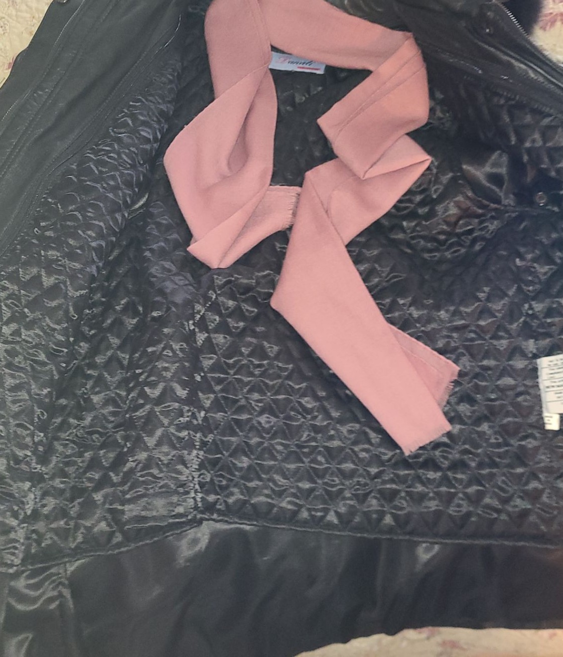 Lot 181 Woman's Black Leather Jacket w Removable Lining sz L & Rose Colour Scarf