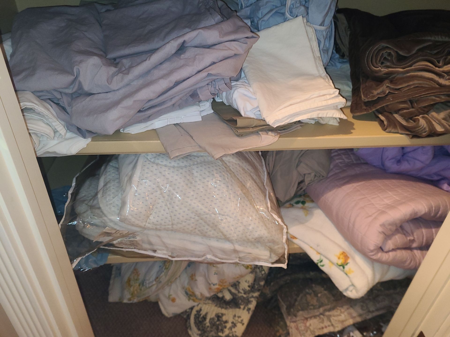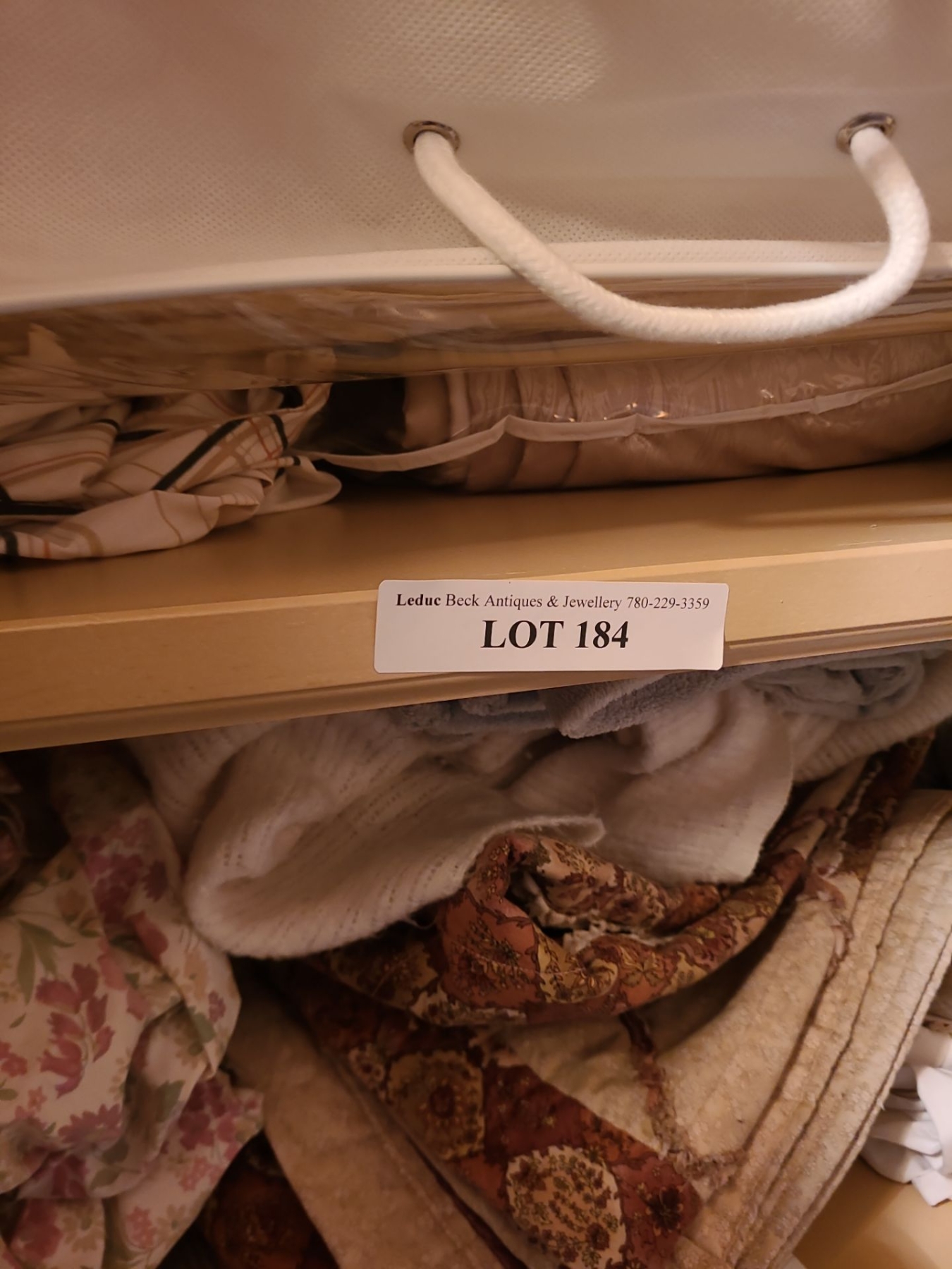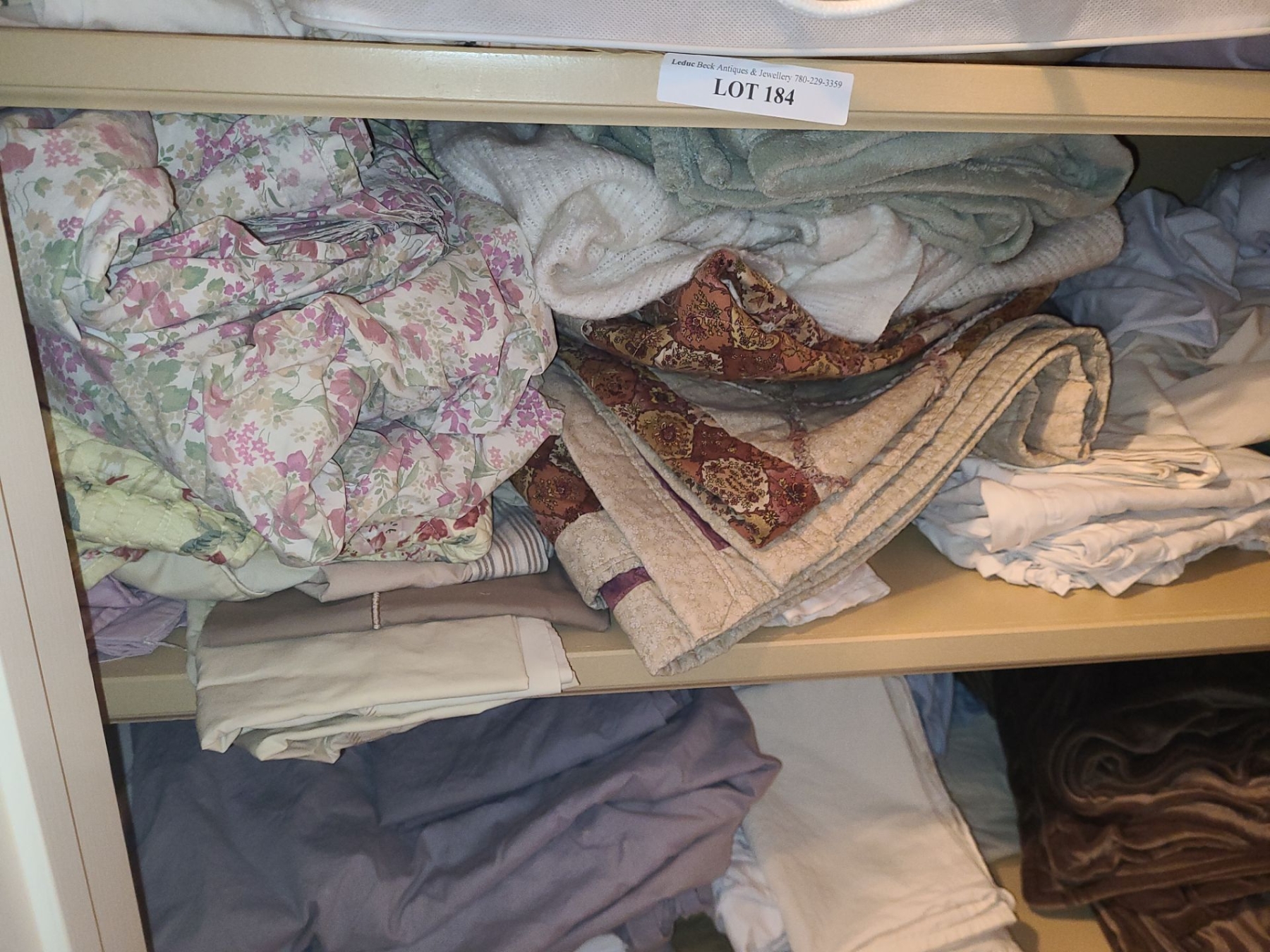Lot 184 Contents of Closet: Large Assortment of Quilts, Linens, Sheets & Blankets