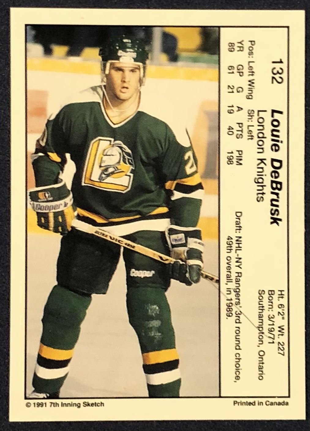 Lot 11 1990-91 7th INNING SKETCH JUNIOR HOCKEY - LOUIE DeBRUSK ROOKIE CARD