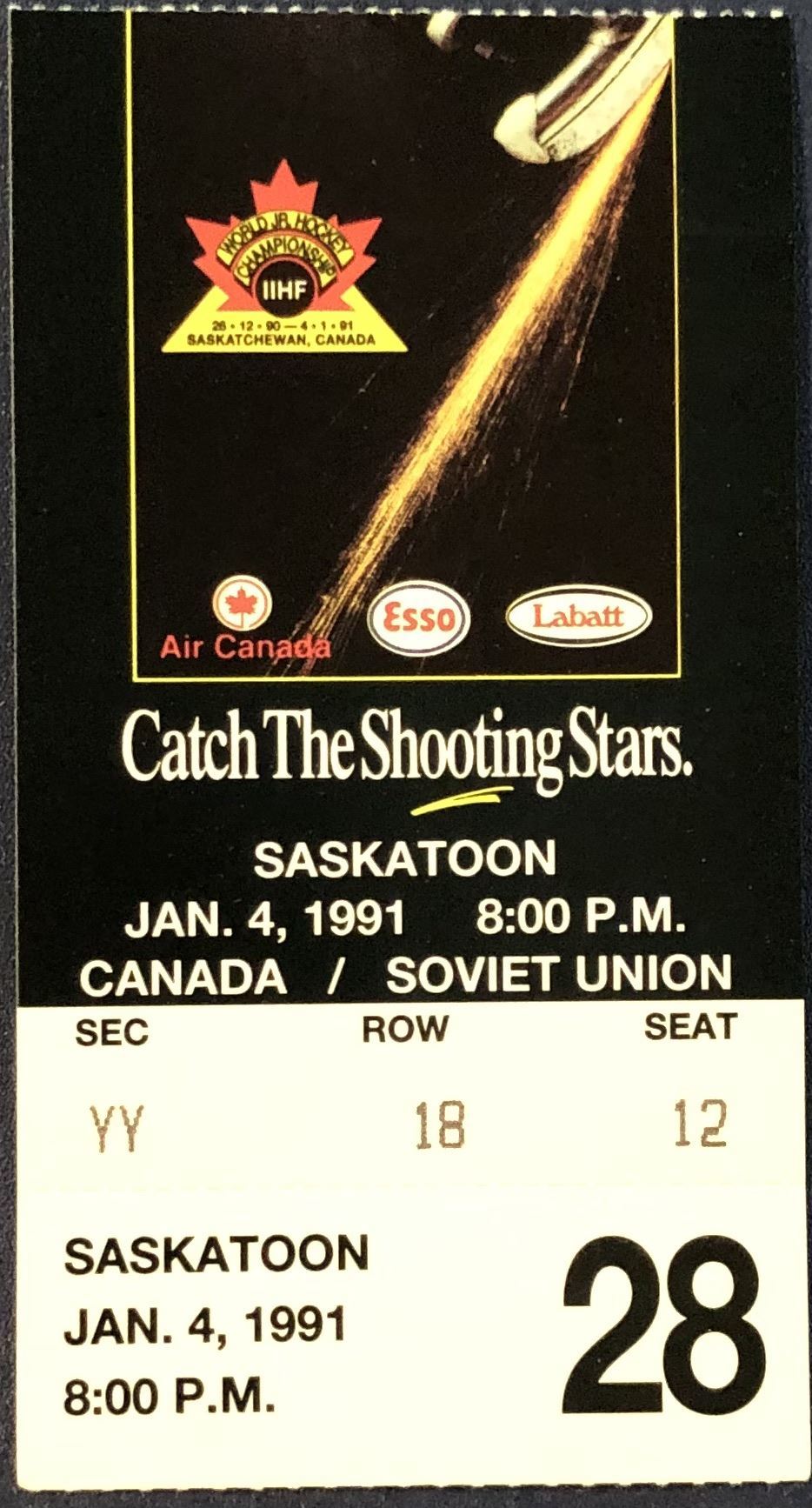 Lot 13 1991 WORLD JUNIOR HOCKEY CHAMPIONSHIPS TICKET - CANADA vs SOVIET UNION