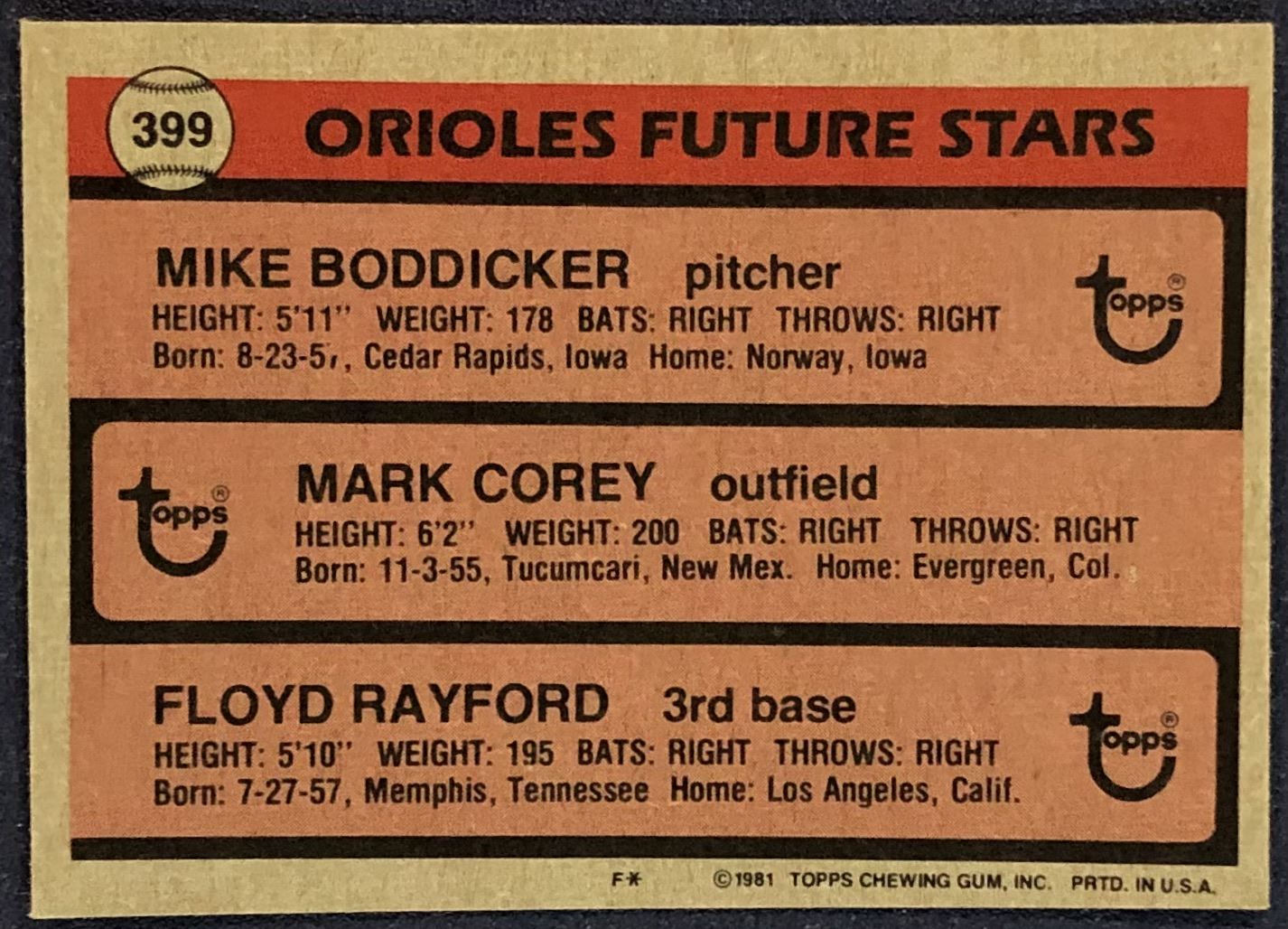 Lot 18 1981 TOPPS MIKE BODDICKER ROOKIE CARD - SIGNED