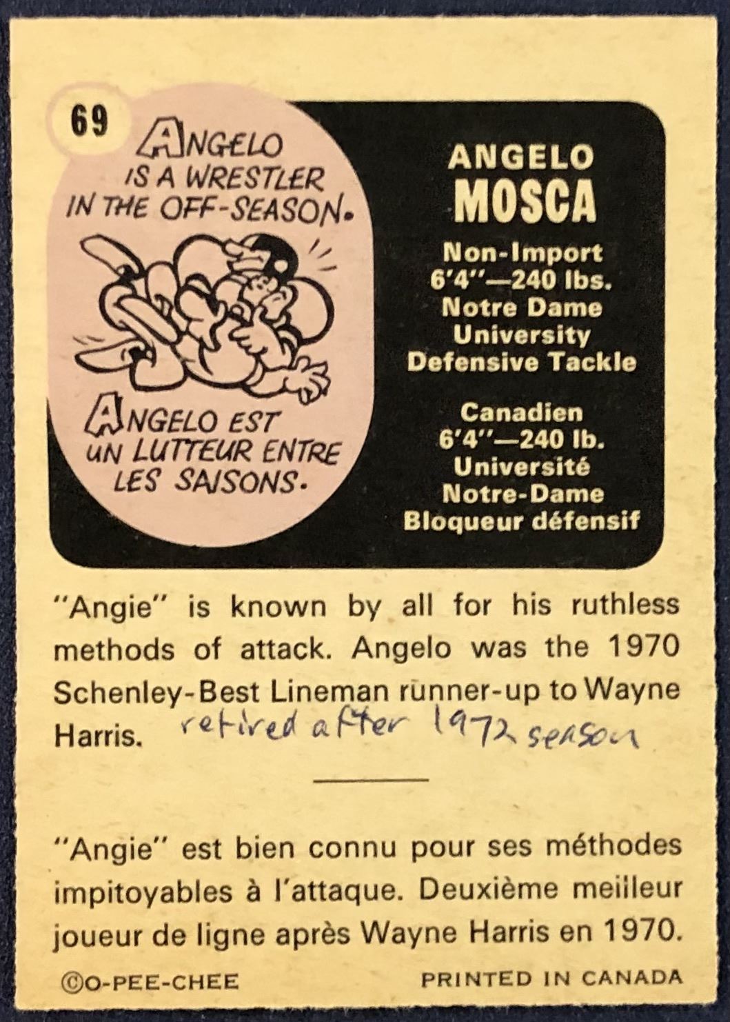 Lot 23 1971 O-PEE-CHEE ANGELO MOSCA (HOF)