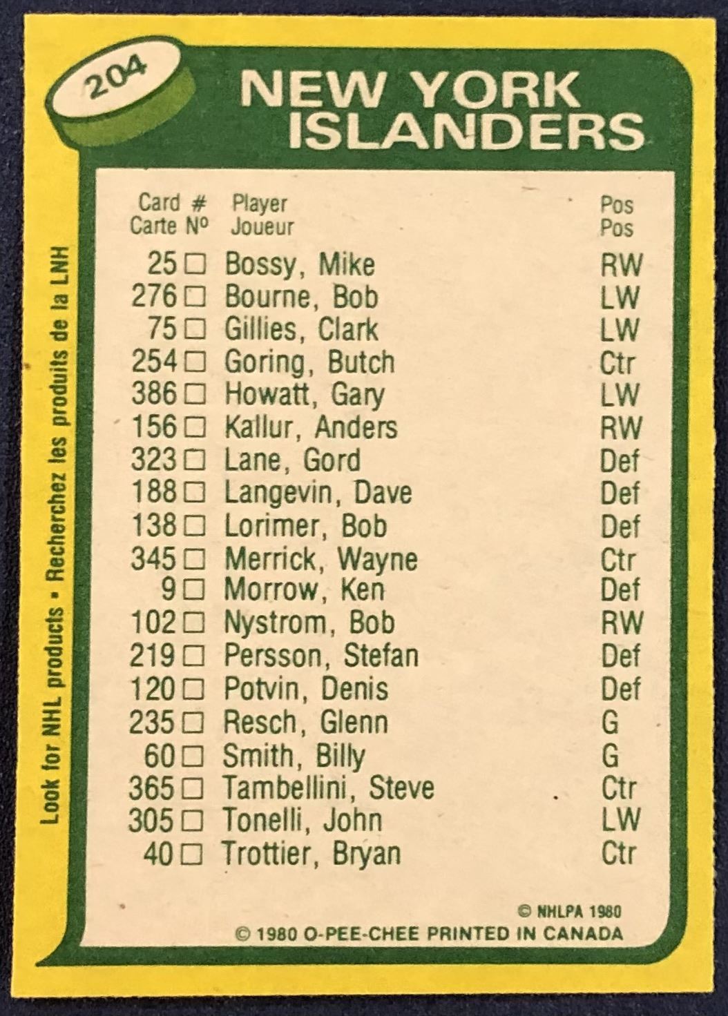 Lot 40 1980-81 O-PEE-CHEE MIKE BOSSY (HOF)