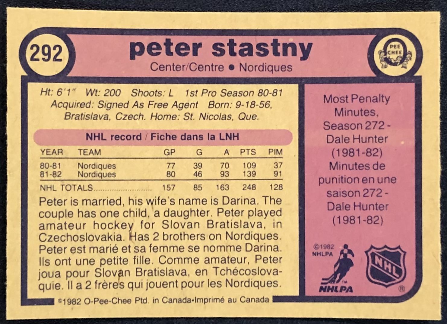Lot 76 1982-83 O-PEE-CHEE PETER STASTNY (HOF)