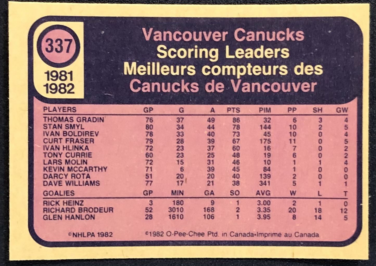 Lot 83 1982-83 O-PEE-CHEE THOMAS GRADIN