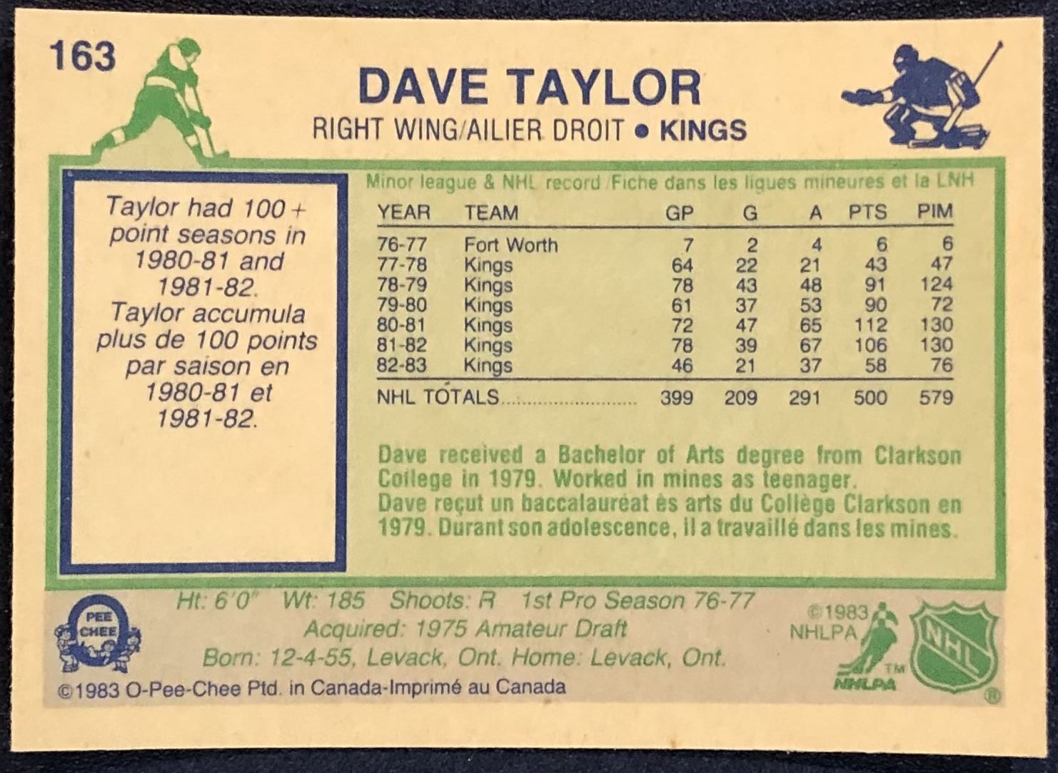 Lot 84 1983-84 O-PEE-CHEE DAVE TAYLOR (HOF)