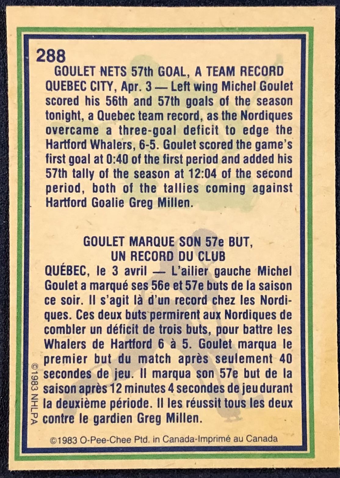 Lot 85 1983-84 O-PEE-CHEE MICHEL GOULET (HOF)