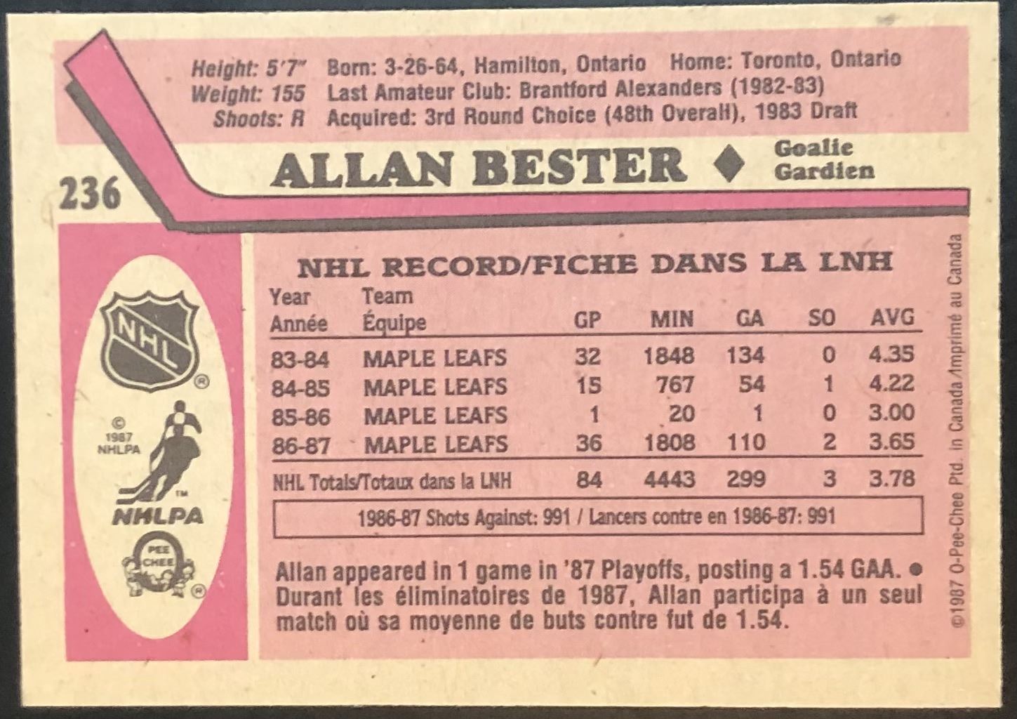 Lot 91 1987-88 O-PEE-CHEE ALLAN BESTER