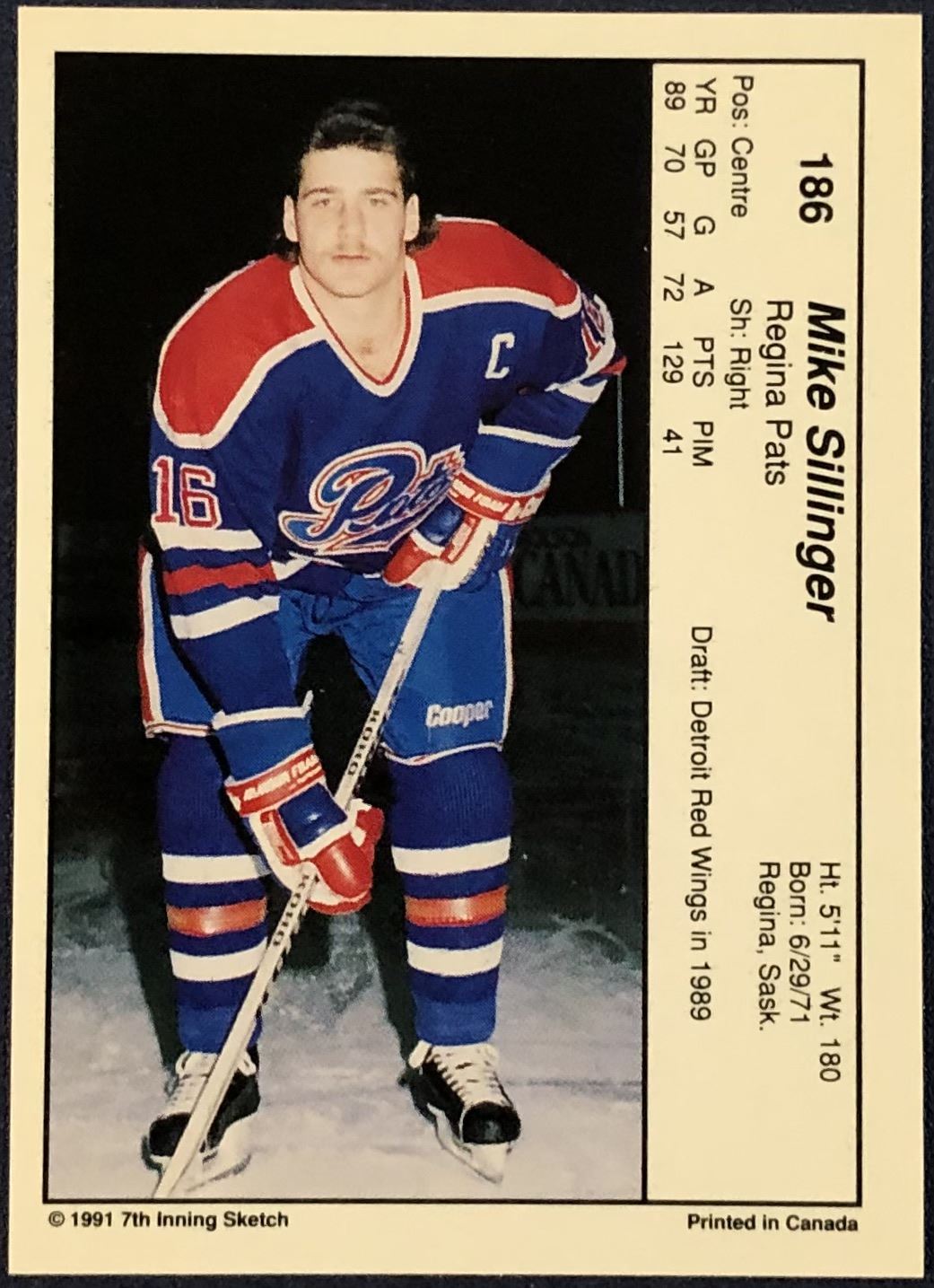 Lot 103 1990-91 7th INNING SKETCH JUNIOR HOCKEY - MIKE SILLINGER ROOKIE CARD