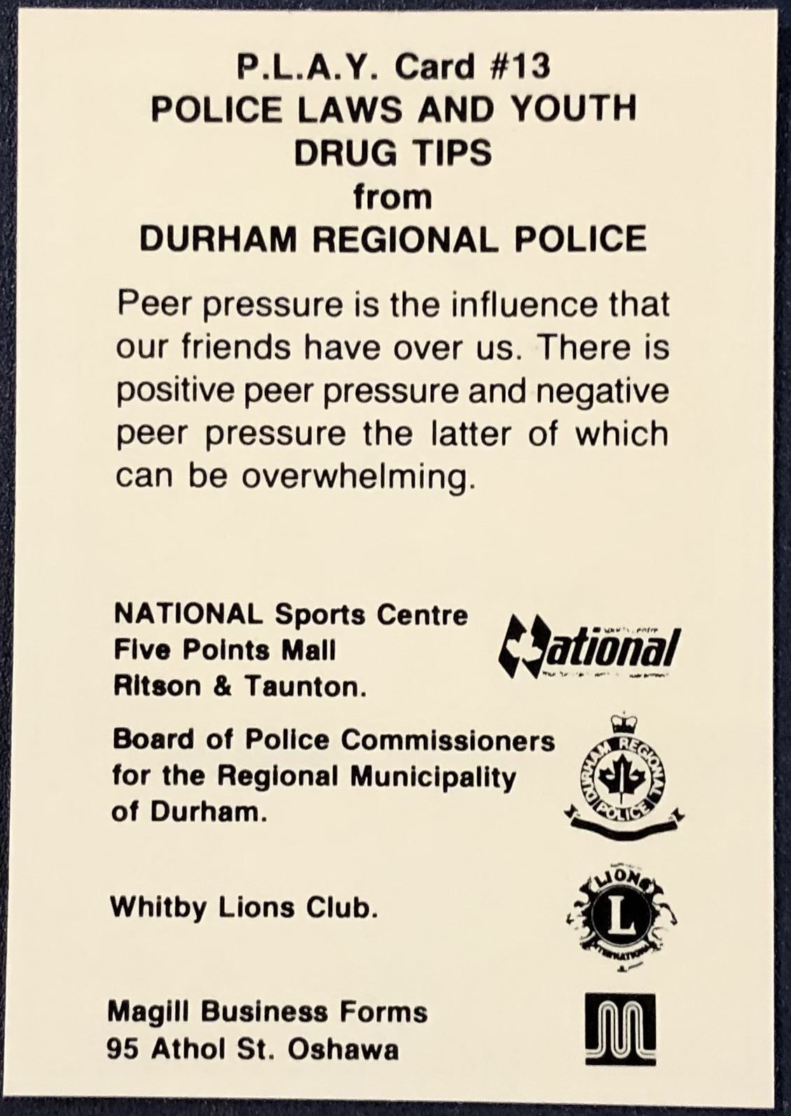 Lot 108 1990-91 OSHAWA GENERALS POLICE CARD - ERIC LINDROS