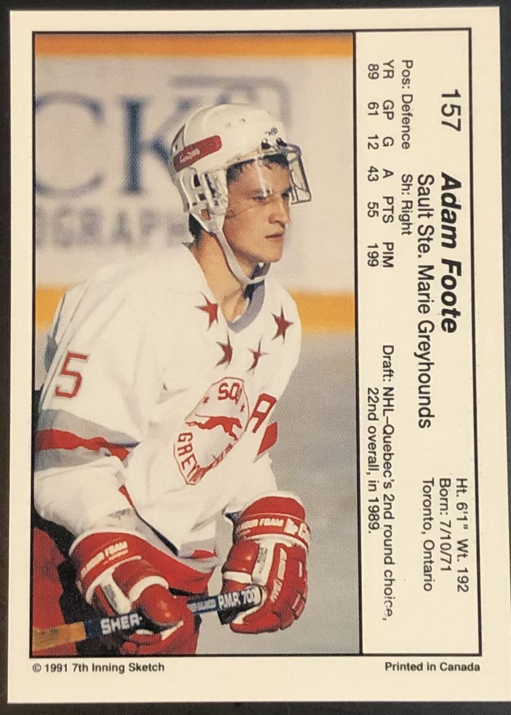 Lot 109 1990-91 SOO GREYHOUNDS (OHL) - ADAM FOOTE