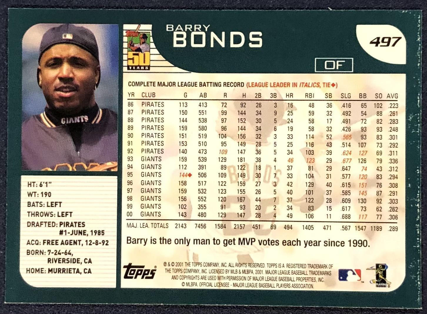Lot 131 2001 TOPPS BARRY BONDS